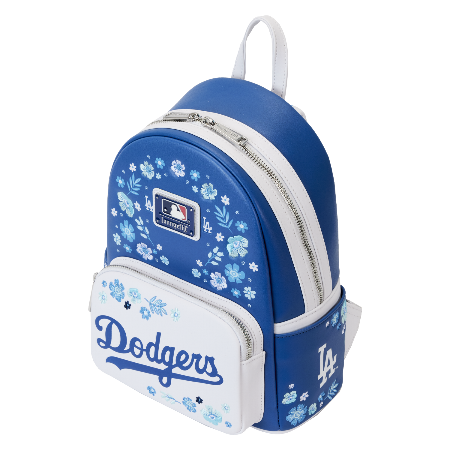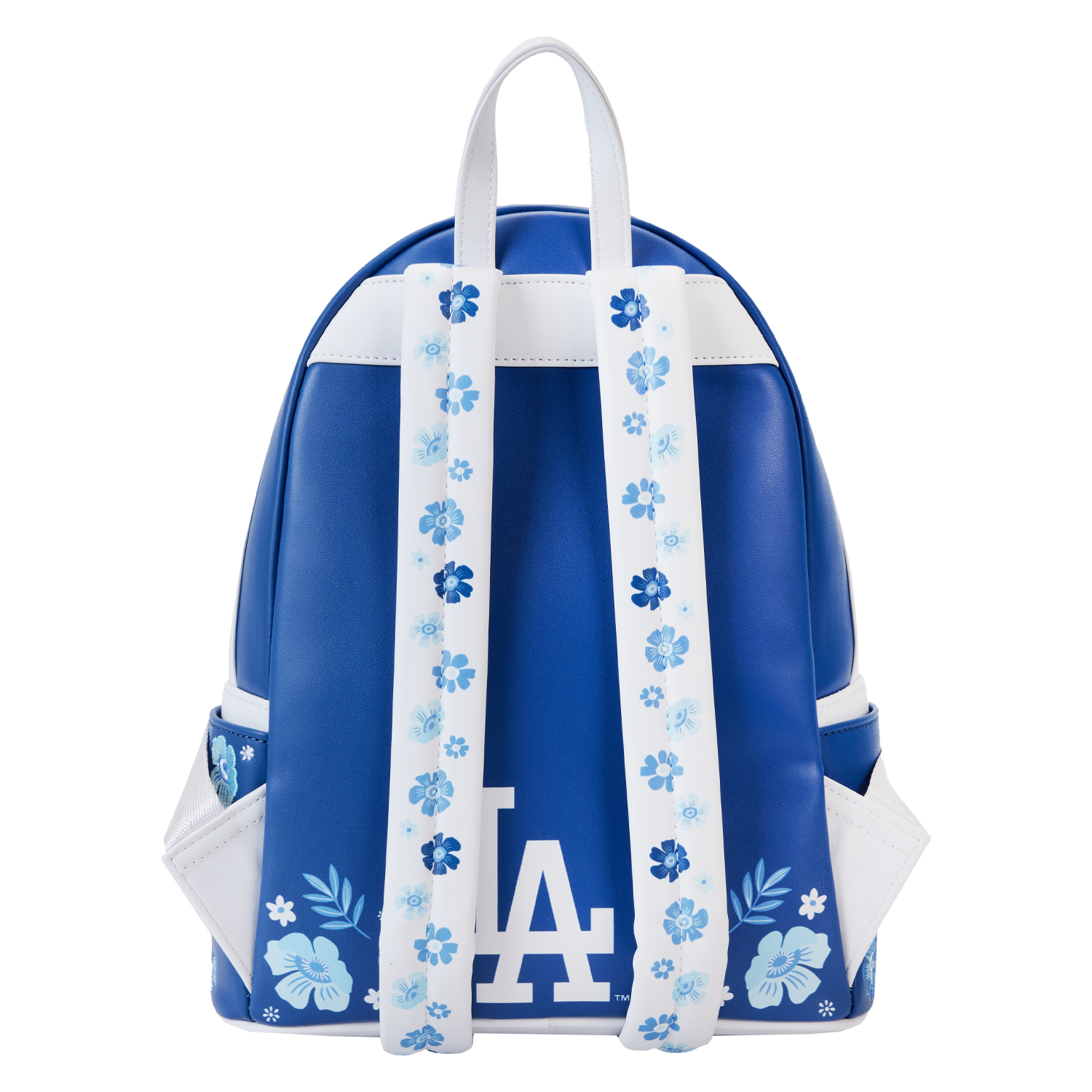 Let the love for your home team bloom! The Loungefly Los Angeles Dodgers Floral Mini Backpack is an instant win for any baseball fan. This blue backpack features an array of embroidered flowers that surround the team’s logo. The front zipper pocket shows an embossed version of the team’s name, and floral details continue onto the bag’s side pockets. Turn the bag around to see an encore appearance of the LA logo while blue flowers appear on the shoulder straps. This stylish accessory gives a fresh take to your sporty looks and will keep your belongings safe at home and on the road.