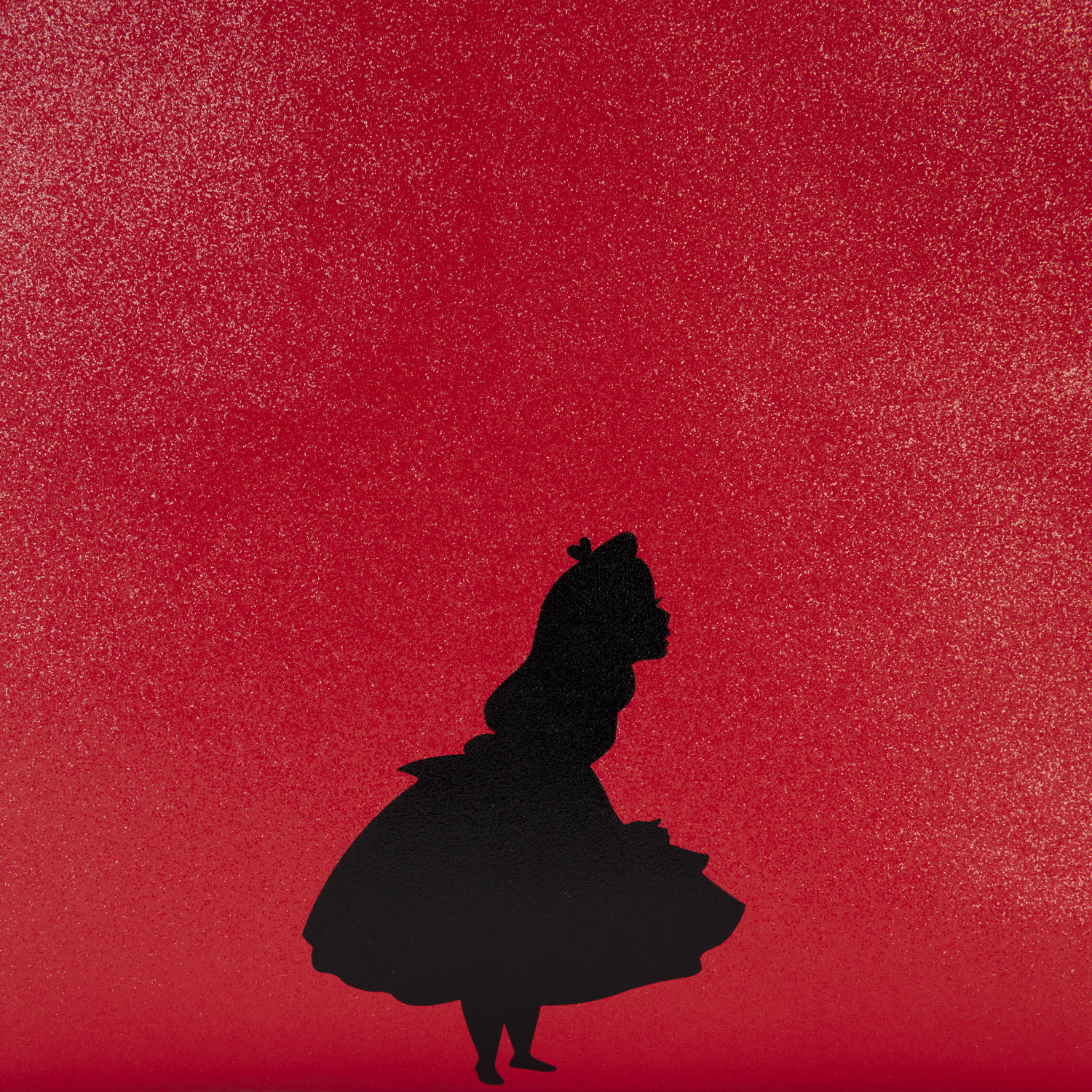 Whether you’re going this way or that way, do so in wickedly wonderful style. Our Loungefly Disney Alice in Wonderland Villains Convertible Crossbody Bag is full of fun surprises. This tote bag-shaped accessory shines in red glitter vegan leather. On the front pocket, an applique of Disney’s Alice and the White Rabbit appear against a debossed background of signs that point in every which way. Above them, a debossed shadow of Disney’s Red Queen looms, and the Red Queen’s Card Soldier shadows stand guard. The Card Soldiers carry through on the side pockets, and on the back, you’ll find Alice’s shadow, bending forward. The top of the tote back zips closed as well to secure all your belongings, and black straps allow you to convert this roomy tote into a backpack. Enjoy a wonder of adventures, in character, wherever you go.