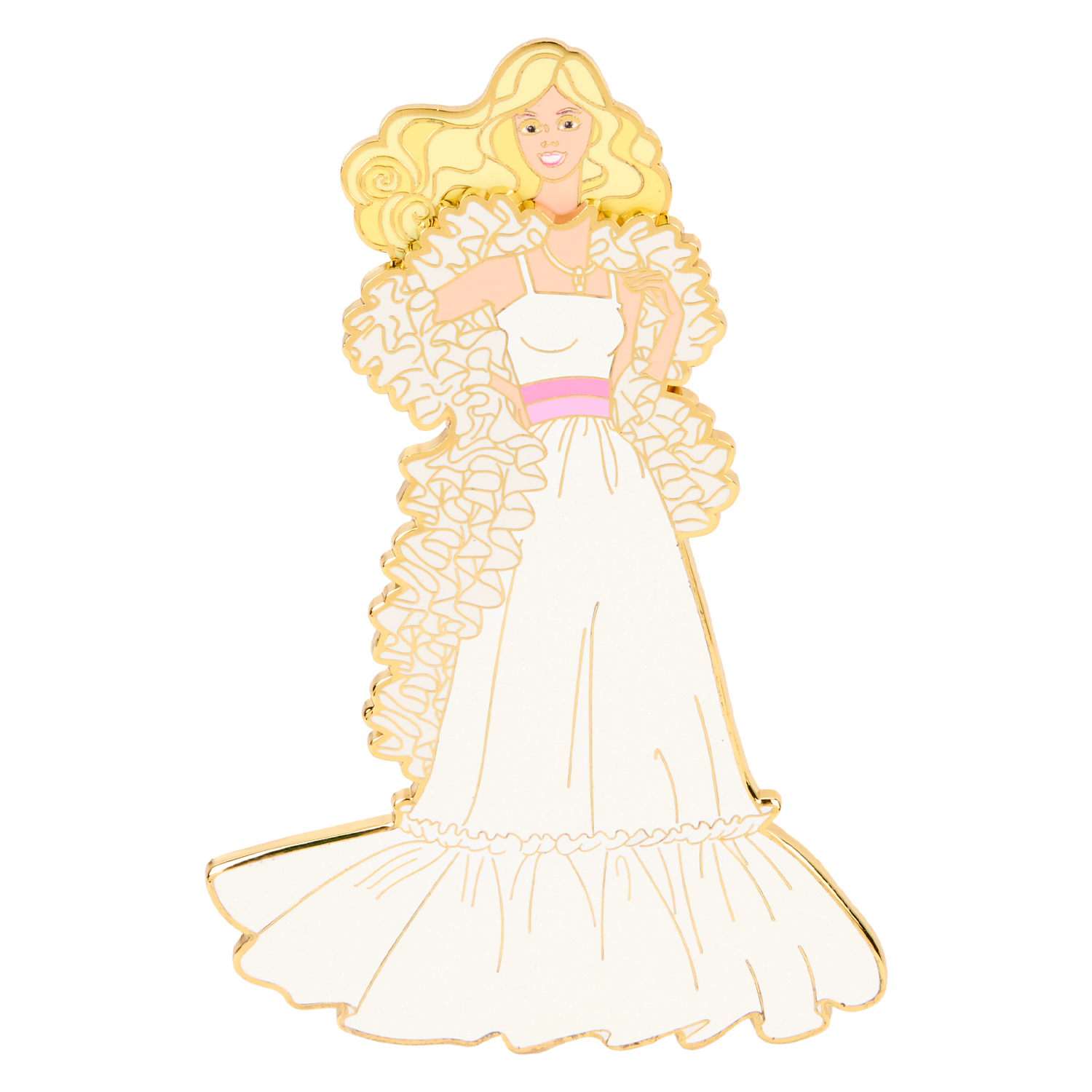 Ready to plan your next look? Inspired by retro paper dolls of the past, this enamel pin shows Barbie™ with three of her classic outfits. Swap the magnetic clothing options to change up Barbie’s appearance as she sets out for the day! This accessory makes a fashionable addition to any outfit or bag and encourages everyone to change the world in style.