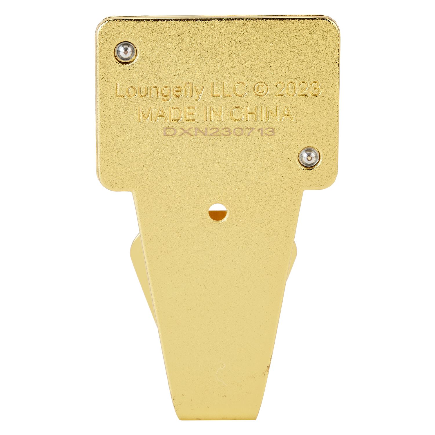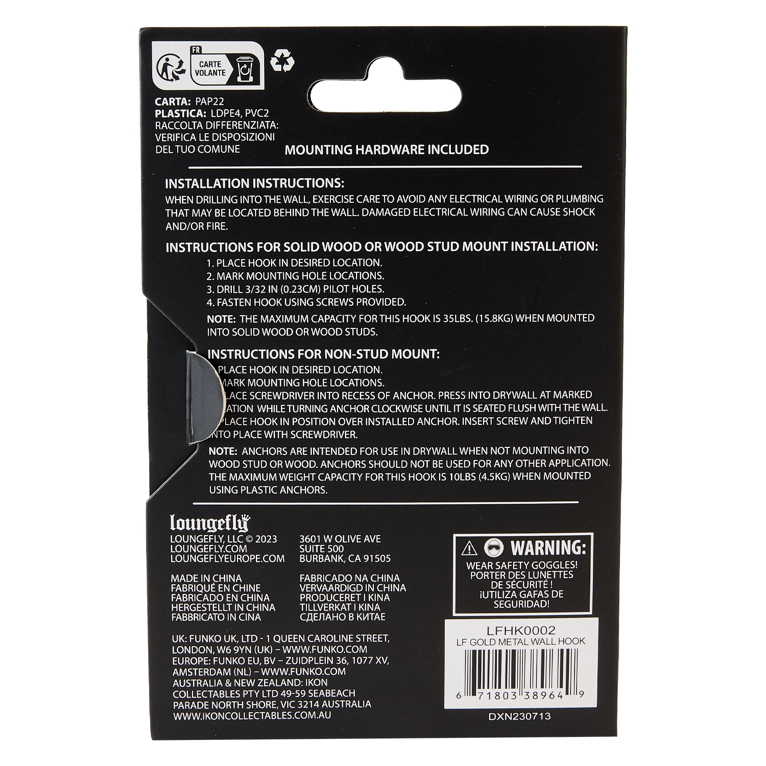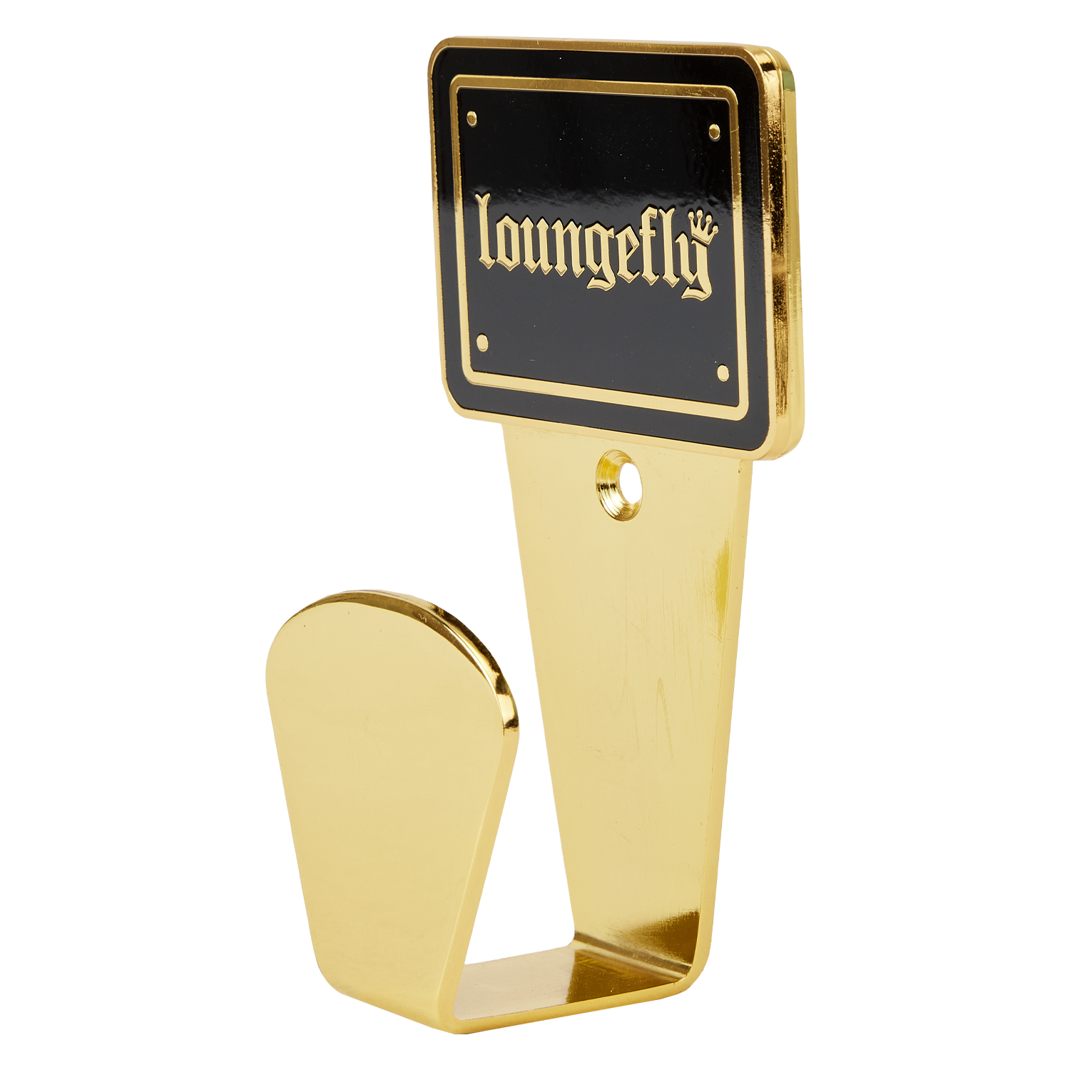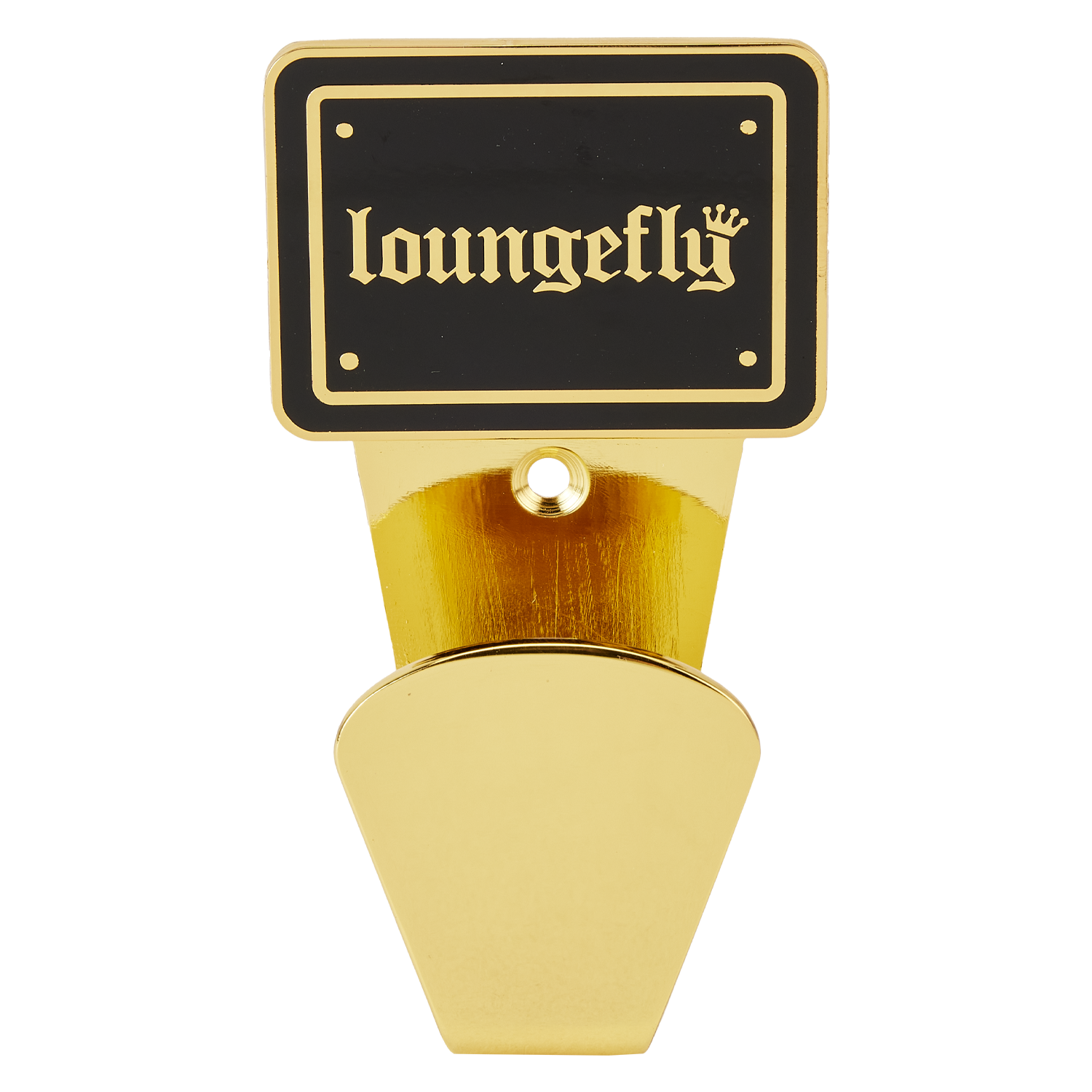 Give your favorite Loungefly bag a stylish lift with our Loungefly Gold Metal Wall Hook. This wall accessory features the signature Loungefly plaque and sturdy gold-colored metal backing and hook. It’s perfect for displaying and organizing  Loungefly bags and apparel, effortlessly.
