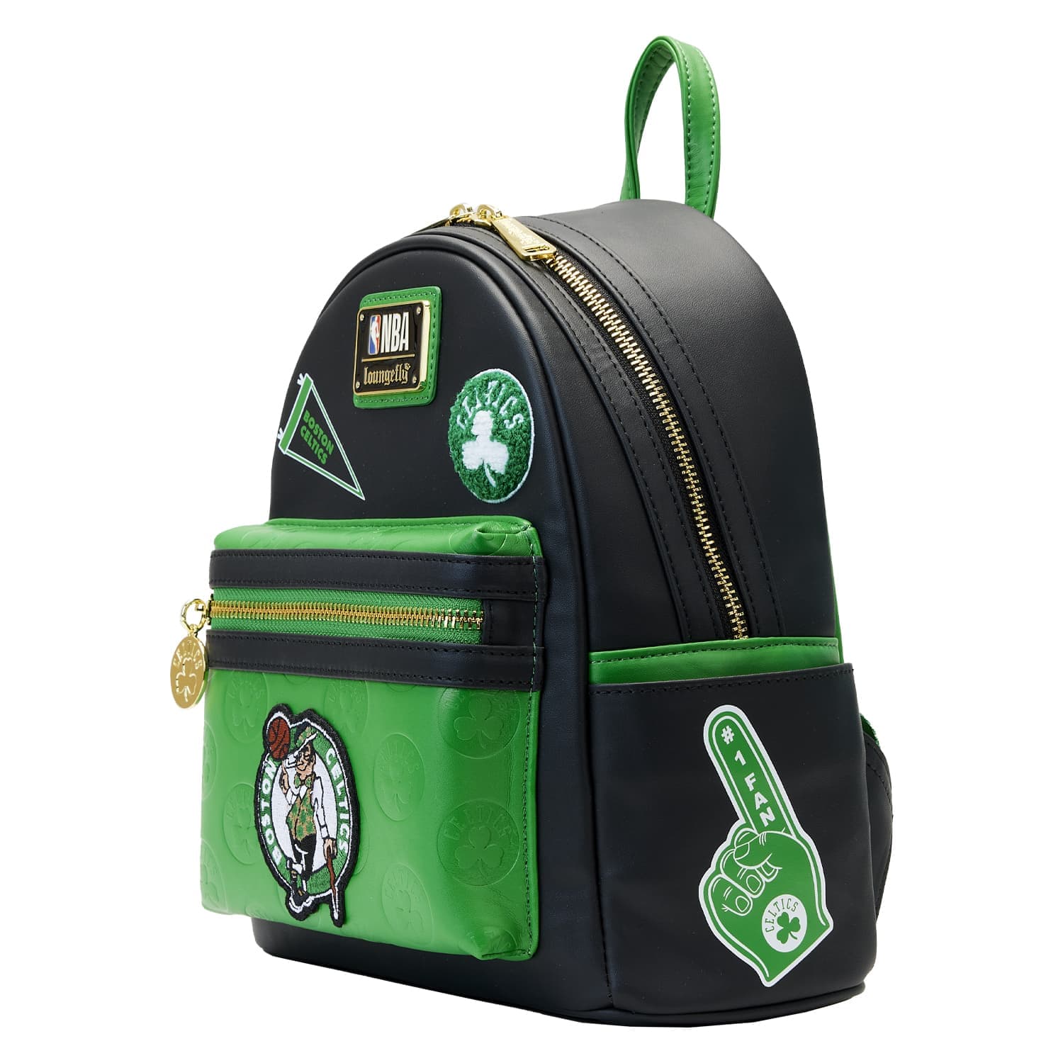Cheer on your favorite team with a game-winning play for your collection! The Loungefly NBA Boston Celtics Patch Icons Mini Backpack features chenille and embroidered patches on the front and side pockets of the bag. The Celtics logo appears in a debossed pattern that covers the front zipper pocket and appears as a shiny gold zipper charm, providing easy access to your game-day essentials. Turn the bag around to see the team’s logo make an encore appearance on the back. Whether you’re watching from home or on the sidelines, this stylish mini backpack has plenty of room to carry your gear while sporting your team spirit.