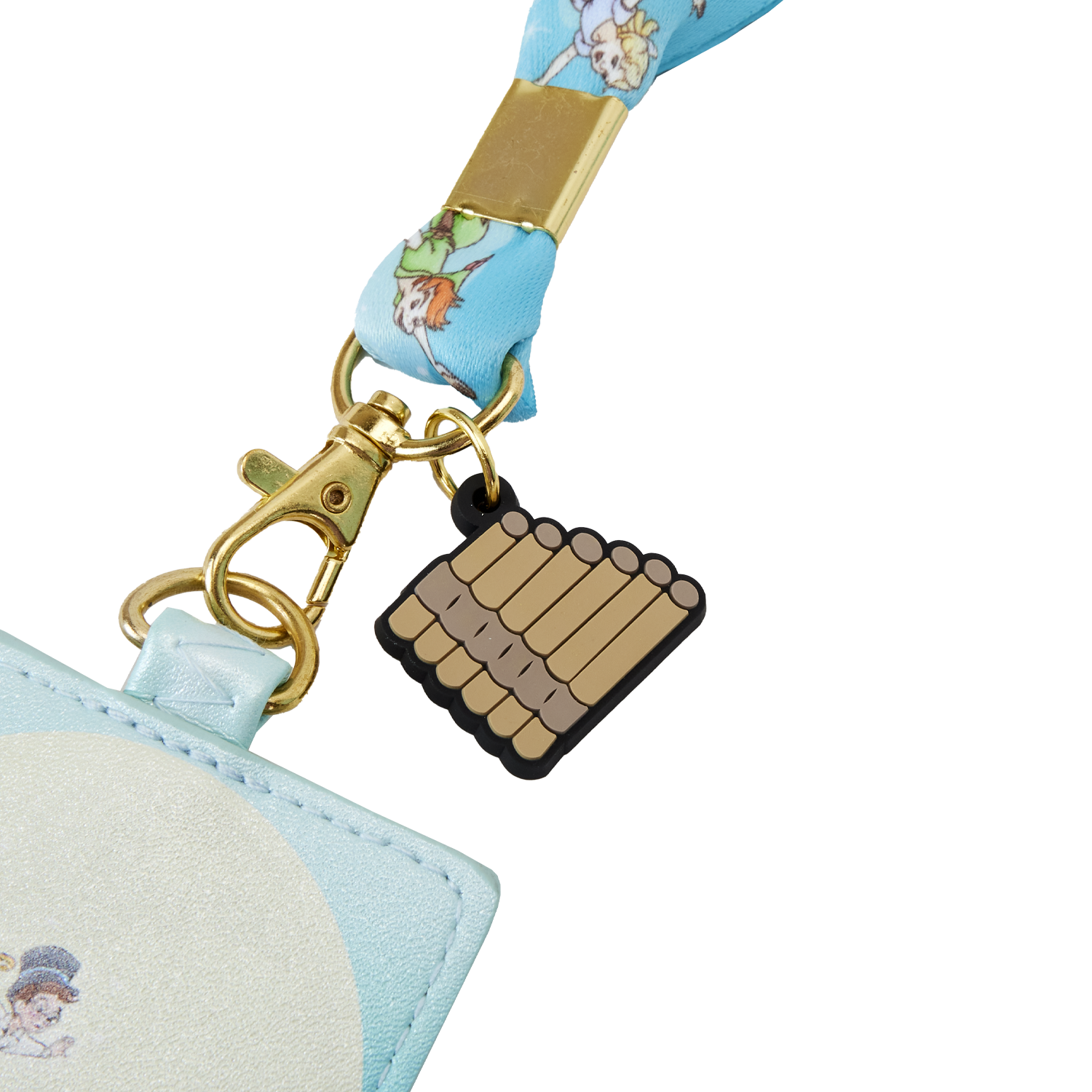 The happiest thoughts can make your adventures take flight! Set your sights on the Loungefly Peter Pan You Can Fly 4PC Pin Set, where the Darling siblings soar to Neverland with the help of their new friends. On the front of the card holder, Peter Pan and Tinker Bell lead Wendy, John, and Michael across the London skyline under a full moon. A clear slot for holding ID appears on the reverse side, which shows some river scenery on the lining. Up above, a flute-shaped charm accompanies the lanyard’s all-over print of Peter and the Darling children. This accessory adds a touch of whimsy to any outing and will keep your belongings safe throughout your travels.