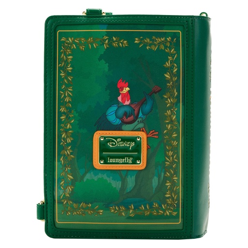 “Oo-dee-lally!” Take aim for a charming interpretation of an animated classic with the Robin Hood Book Convertible Crossbody Bag. Resembling a book cover, the front of this bag features Robin Hood with his signature bow and arrows as he stands in Sherwood Forest. A leafy frame surrounds the movie’s title as it appears along the book’s front and “spine.” Alan-A-Dale is perched on the back of the bag, ready to play a song at a moment’s notice. Open the bag to find storybook-like artwork of Robin’s adventures with Little John, Prince john, and Maid Marian. Easily convertible, this bag can transform into a backpack with the book lying open against your back or can be worn closed as a crossbody purse. With secure zipper pockets disguised as book pages, this multi-function bag is the perfect accessory to accompany your schemes.
