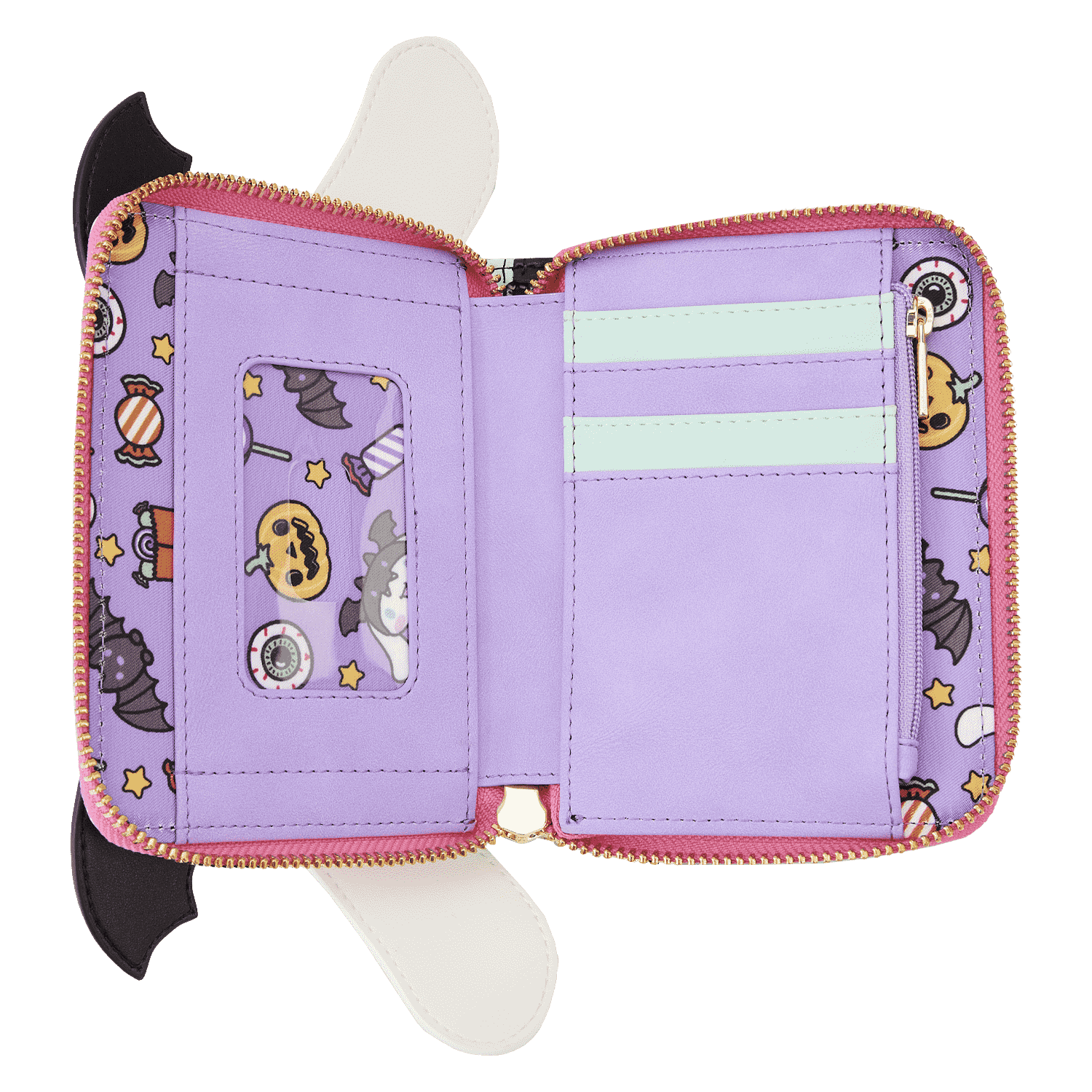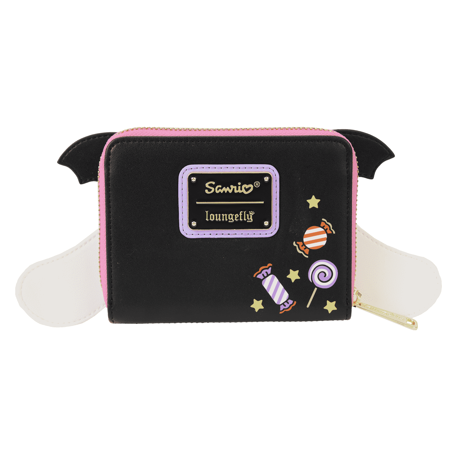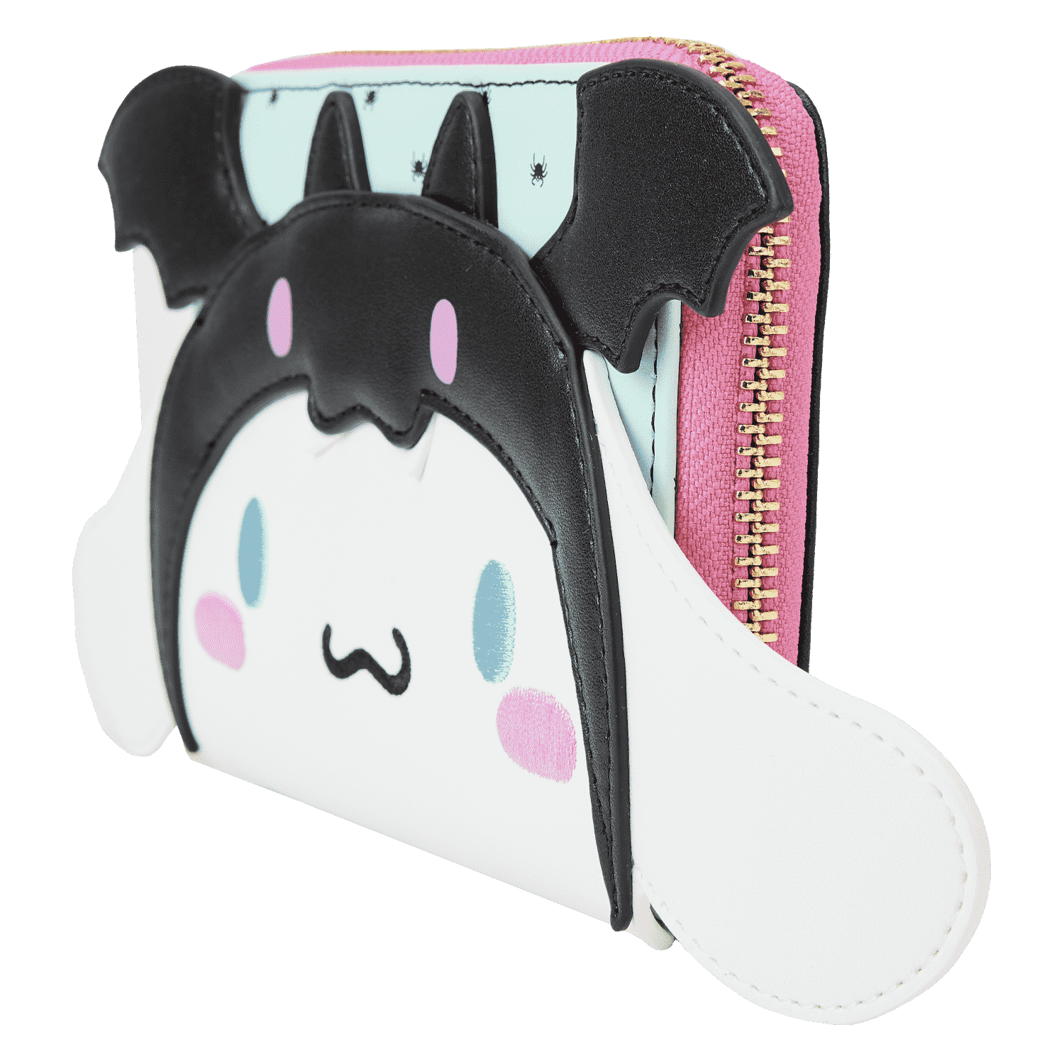 Swoop into Café Cinnamon in style with our Loungefly Sanrio Cinnamoroll Halloween Cosplay Zip Around Wallet. Sink your teeth into delectable treats while carrying along this adorable accessory featuring Cinnamoroll dressed as a vampire bat. Bat wings poke up over the top of the wallet, and Cinnamoroll’s delightful face comes to life in embroidered detail. On the back, you’ll find two striped, wrapped treats and a striped lollipop. Inside, there are 4 slots for holding cards and 1 clear slot for displaying your ID. Take flight on scary fun adventures wherever you go.