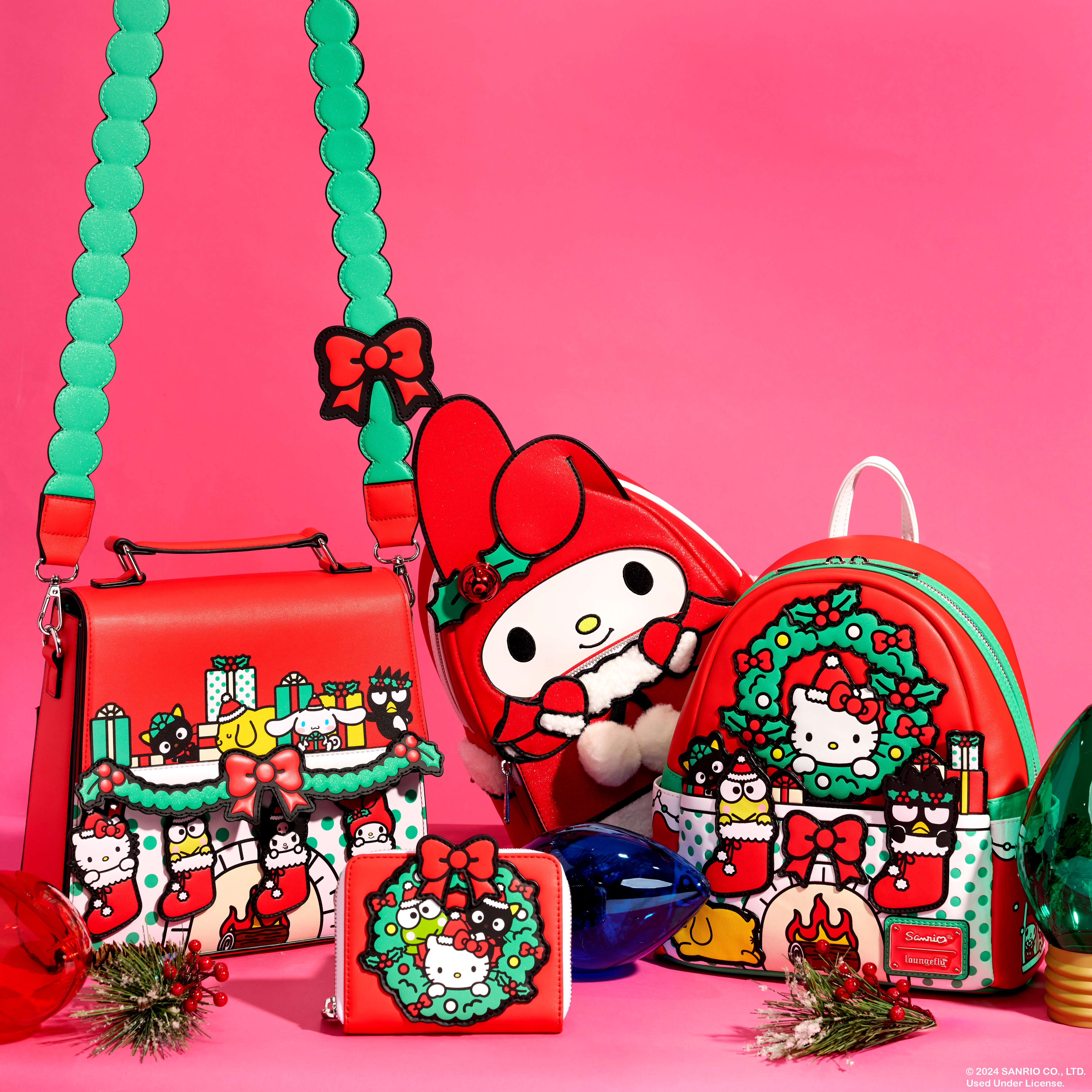 Ring in the holidays with the sweetest of sounds. Our My Melody mini backpack features a real jingle bell decoration—and other festive surprises. Her characteristic hat rises up in applique detail, over the front pocket, which is also decked out for the holidays. Fluffy white sherpa details accent the glittery red of her attire—and white pom-poms hang from real-cord details. There’s plenty of room to secure your daily essentials and share the gift of friendship wherever you go.