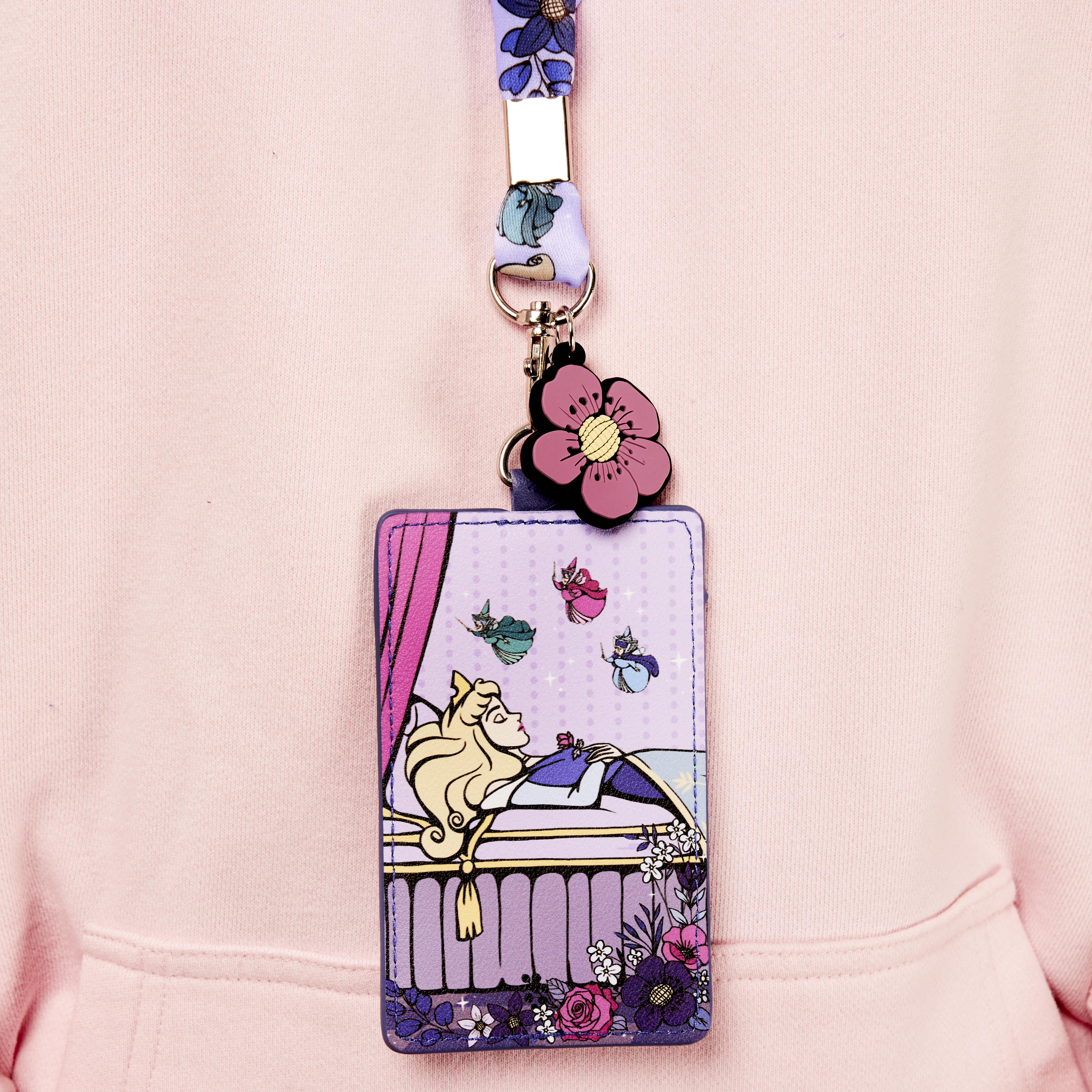 Sleeping Beauty 65th Anniversary Floral Scene Lanyard With Card Holder
