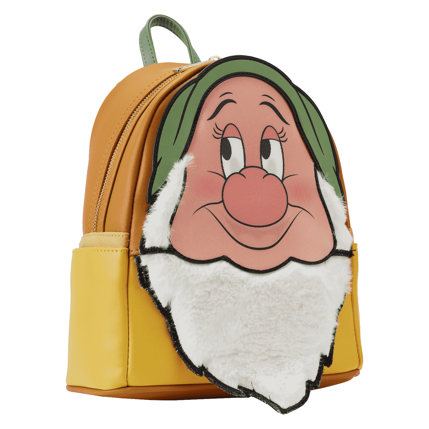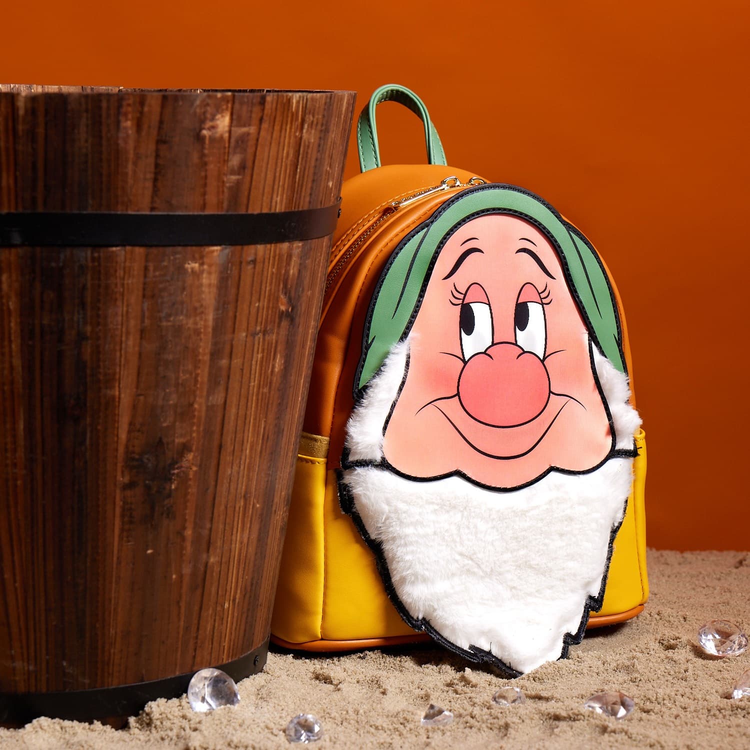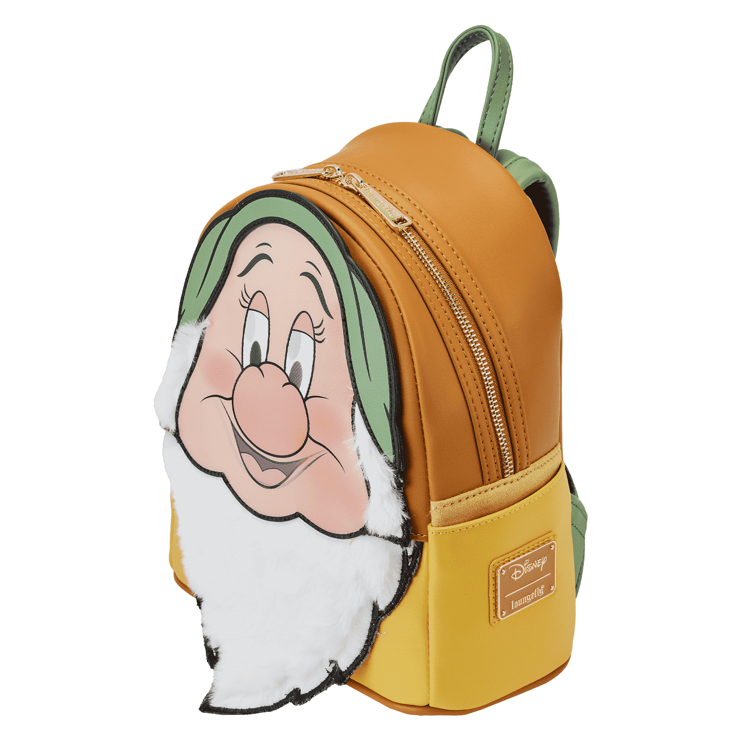 Don’t be shy! Pack for fun adventures with our exclusive Loungefly Disney Snow White and the Seven Dwarfs Bashful Mini Backpack. Bashful’s face and beard come to life in applique details. Soft faux fur covers Bashful’s beard on the front pocket, and lenticular details are a window to Bashful’s true feelings. In one view, he’s blushing slightly. In another, his face is quite a bit brighter and red. On the back, he makes an encore appearance. Turn everyday moments into fantastic adventures with this gem of an accessory.