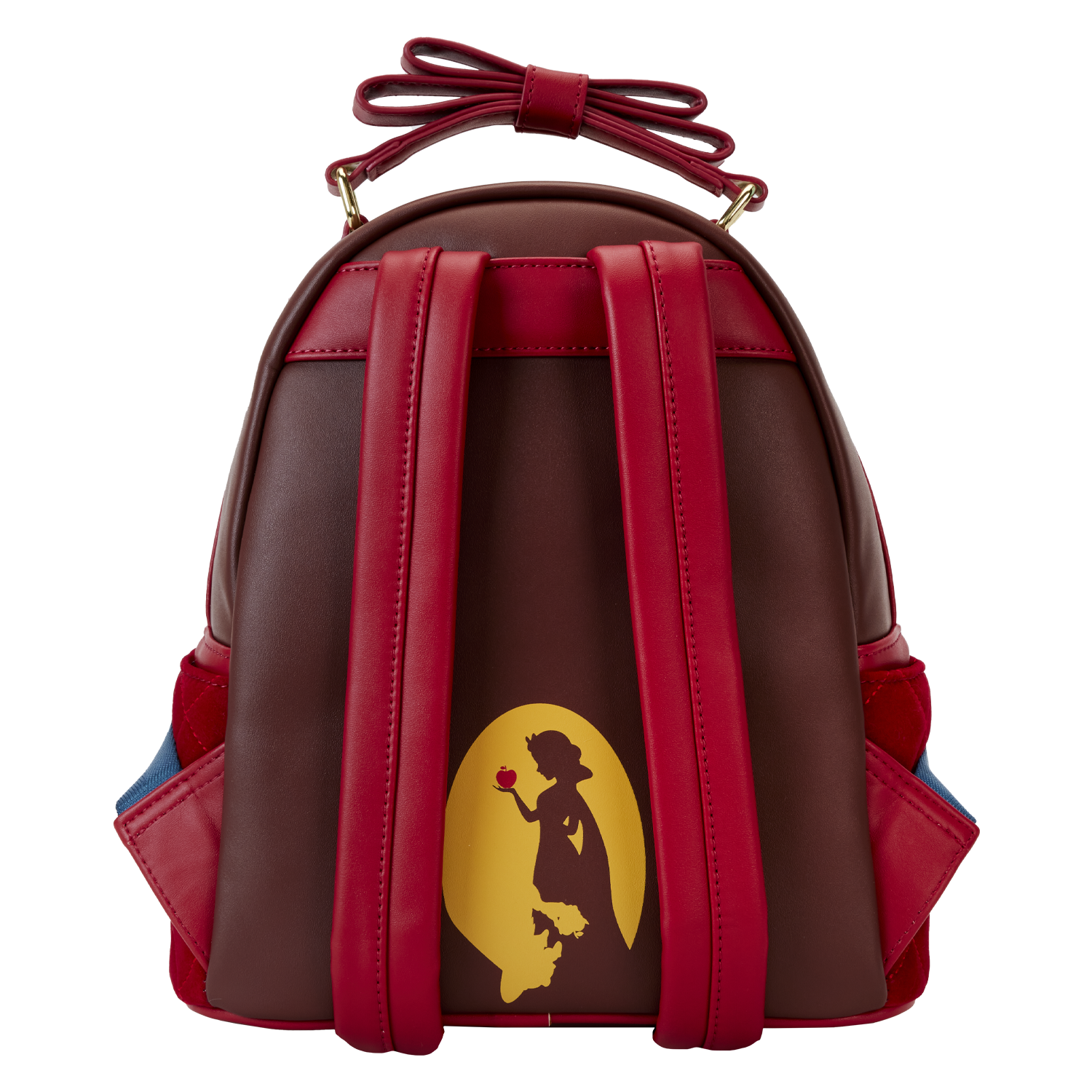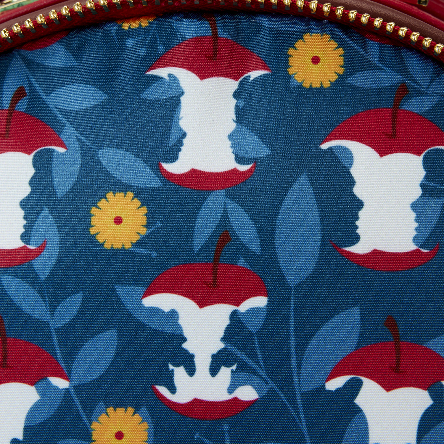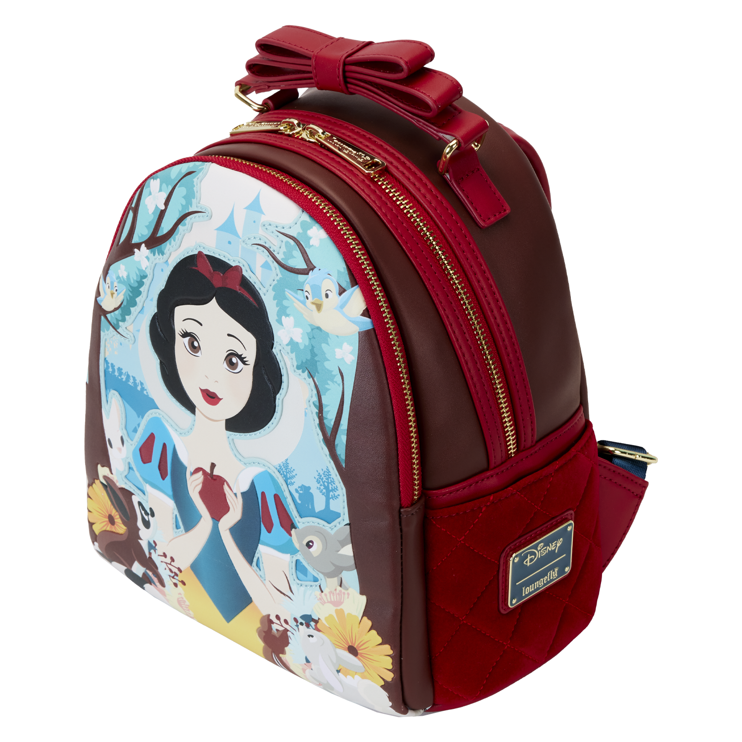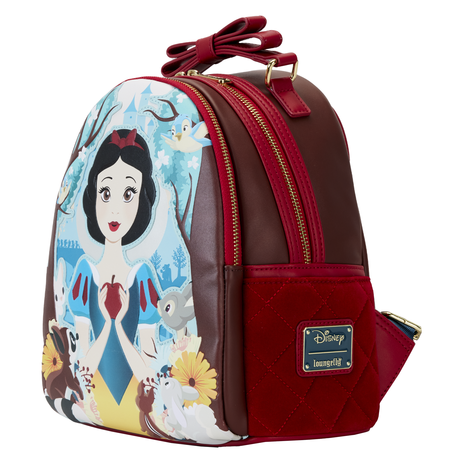 At the core of this delightful backpack is a sweet and fresh take on a classic. The Loungefly Disney Snow White Classic Mini Backpack features original artwork. Layered appliques of Disney’s Snow White and woodland creatures take center stage. Snow White holds the apple in her hands, and on the side pockets, quilted, tufted material offers a luxurious, velvety feel. On the back, Snow White makes an encore appearance as a silhouette print, holding the apple. A bow-top handle adds a signature touch. Pack your daily essentials and take a big bite out of adventures in style.
