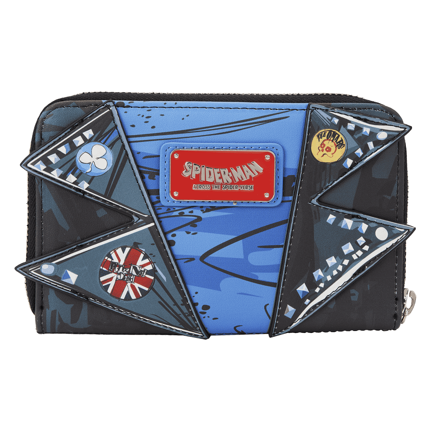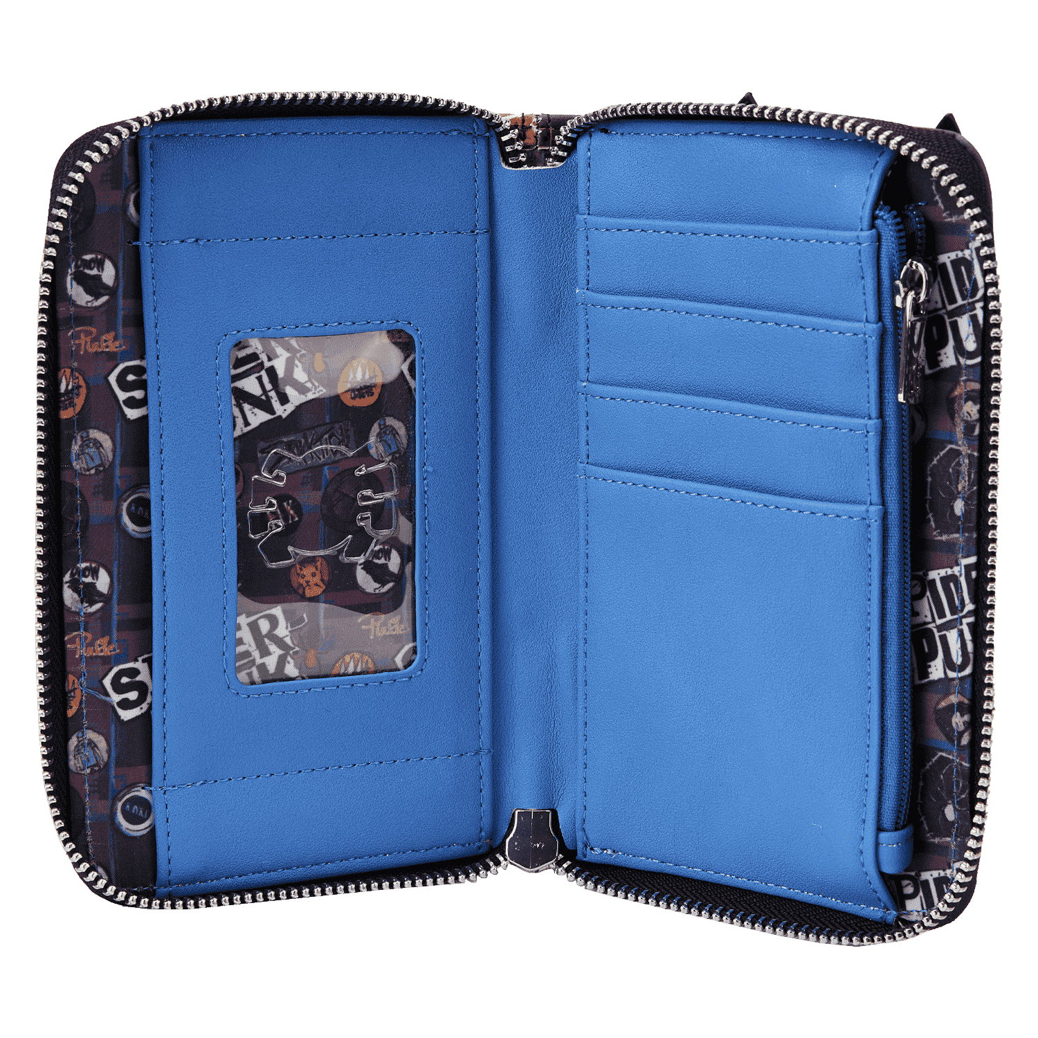 Get ready to shred! The Loungefly Spider-Punk Cosplay Zip Around Wallet is starting a riot in your wardrobe. Giving shape to a Spider-Man from another universe, the front of this accessory shows Spider-Punk’s grungy facemask. On the back, a tattered shirt appears beneath a jacket that sports buttons on the collar. With four slots for holding cards and a clear slot to hold ID, this hardcore accessory will protect your belongings as you hit the streets. Act fast to collect this Loungefly accessory; supplies are limited.