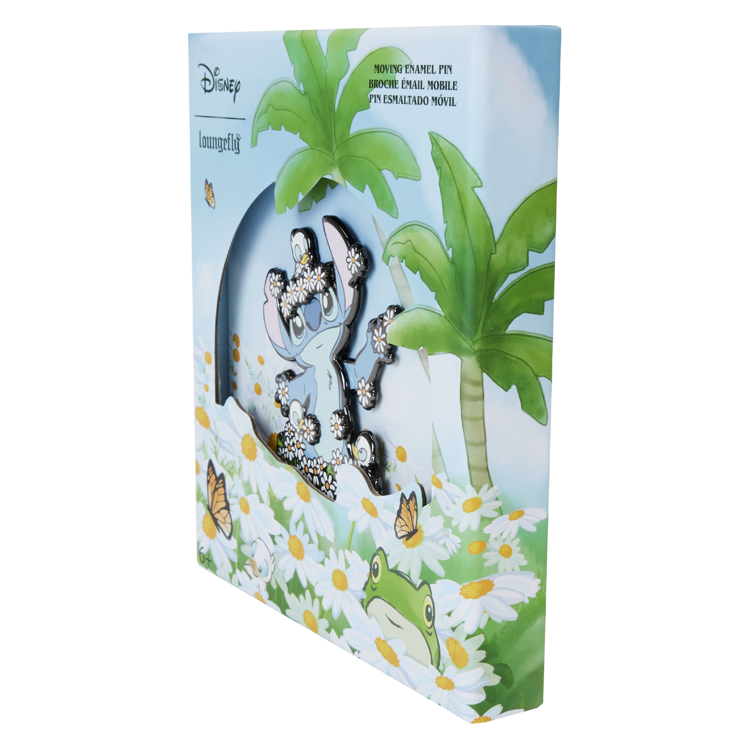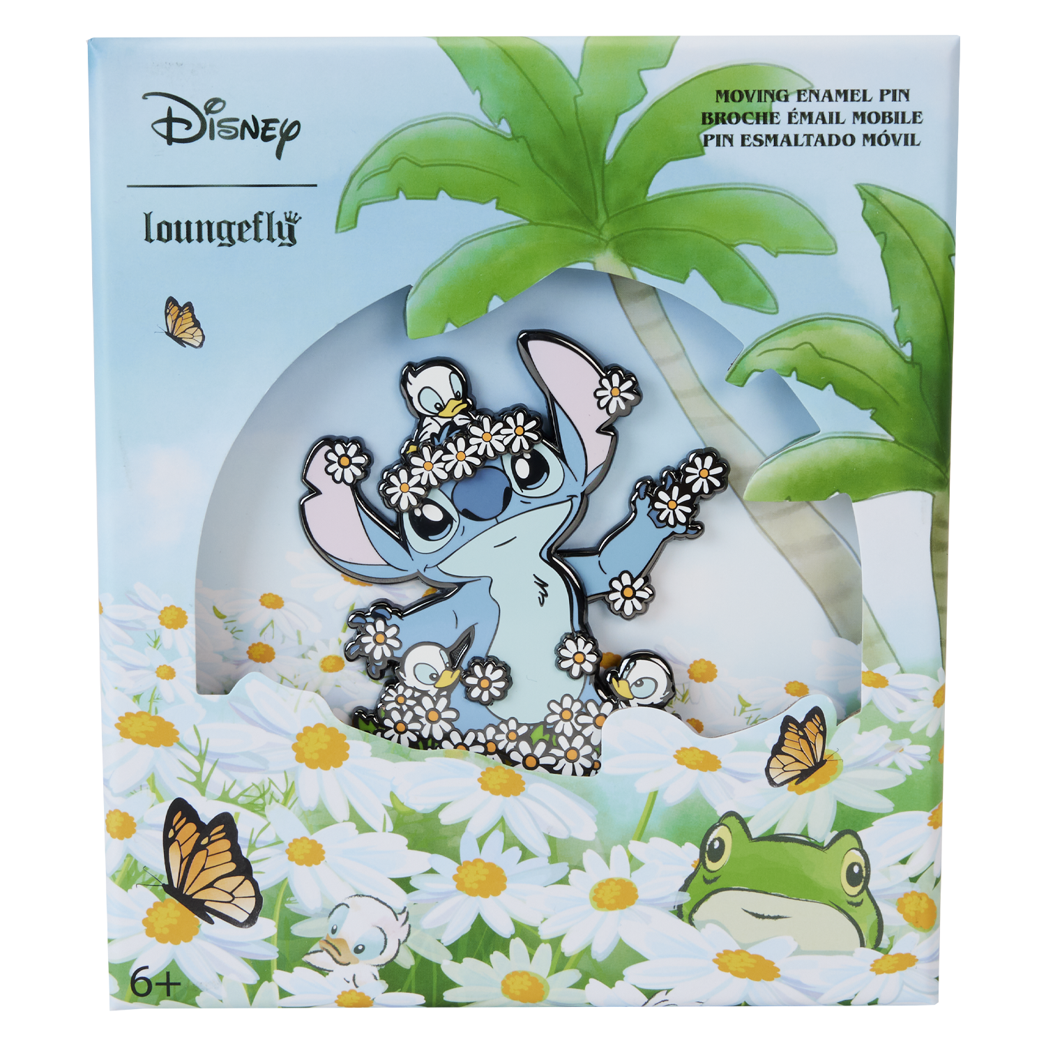 New beginnings are in bloom! Embrace a season of fresh starts with the Loungefly Lilo & Stitch Springtime Stitch 3” Collector Box Pin. On this enamel pin, Stitch plays with some ducklings in a field of daisies. His arm moves up and down as he tosses flowers into the air, putting the scene in motion. Look closely and you’ll see Stitch wearing a homemade flower crown! This accessory makes an adorable addition to any outfit or bag and is the perfect companion for any outing with friends.