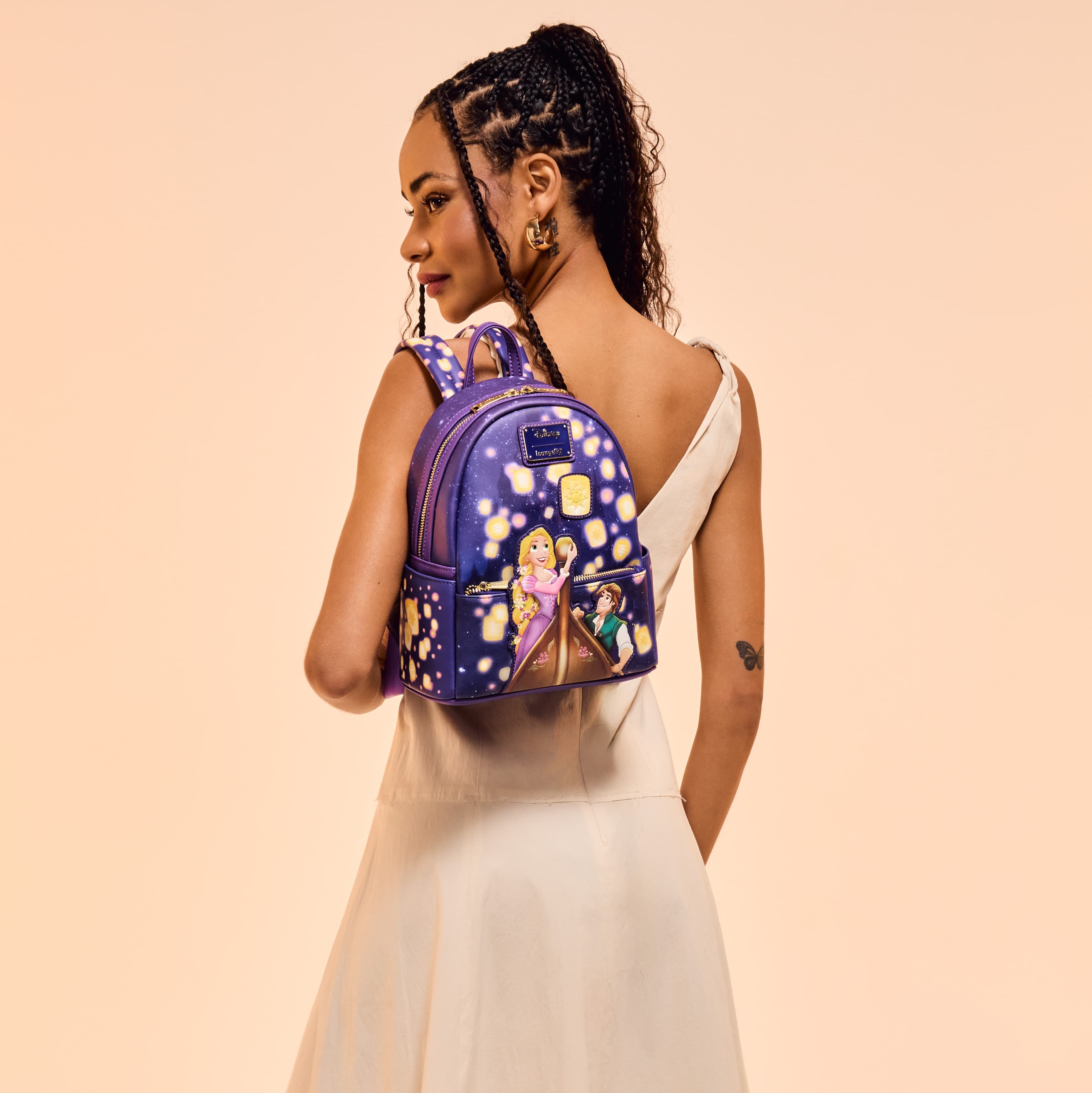 Our newest dream? This collection inspired by the once-lost Princess of Corona. Designed in her signature color, this mini backpack features an unforgettable moment from Rapunzel’s story. You’ll even see the lanterns glow with LED lights! With plenty of room to store your essentials, this accessory makes the perfect addition to your next adventure.