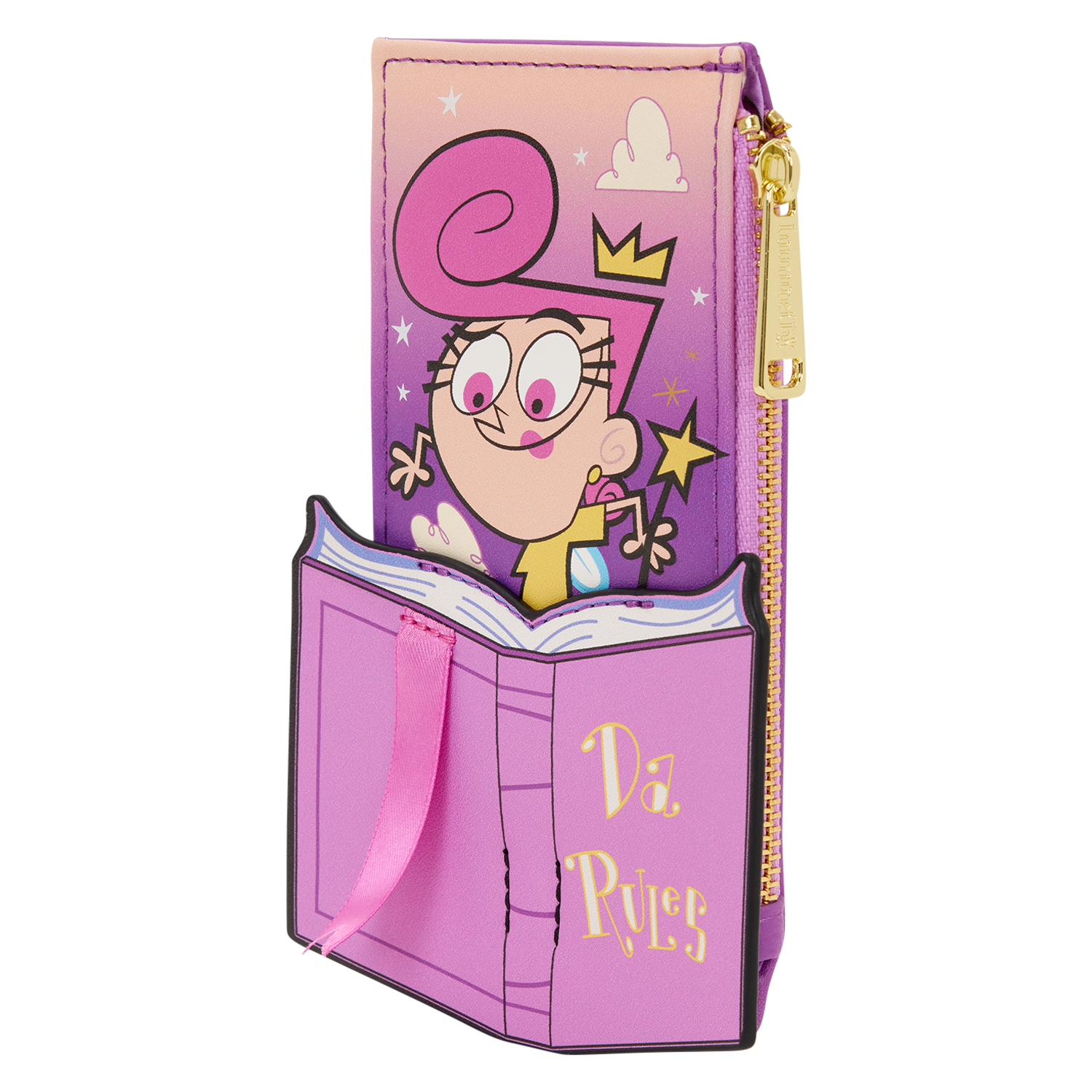 On the front, you'll find Wanda reading a book of "Da Rules." You'll find embossed details and a real satin ribbon bookmark! Turn it around to find Cosmo on the back, along with four card slots! It's the perfect little accessory to show off one of your favorite shows!