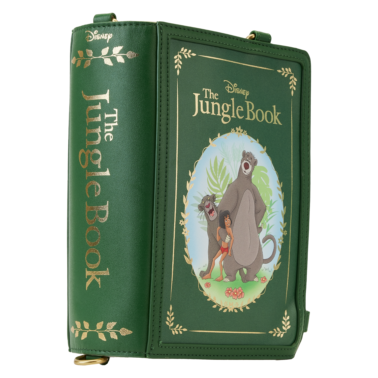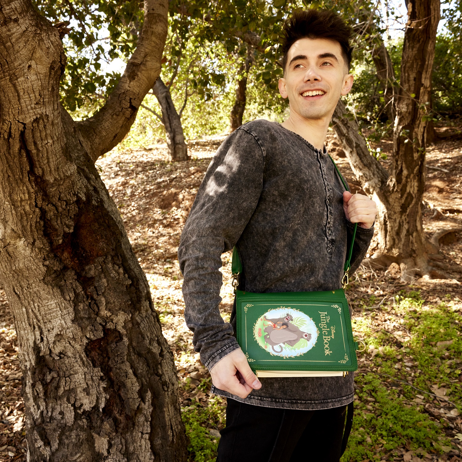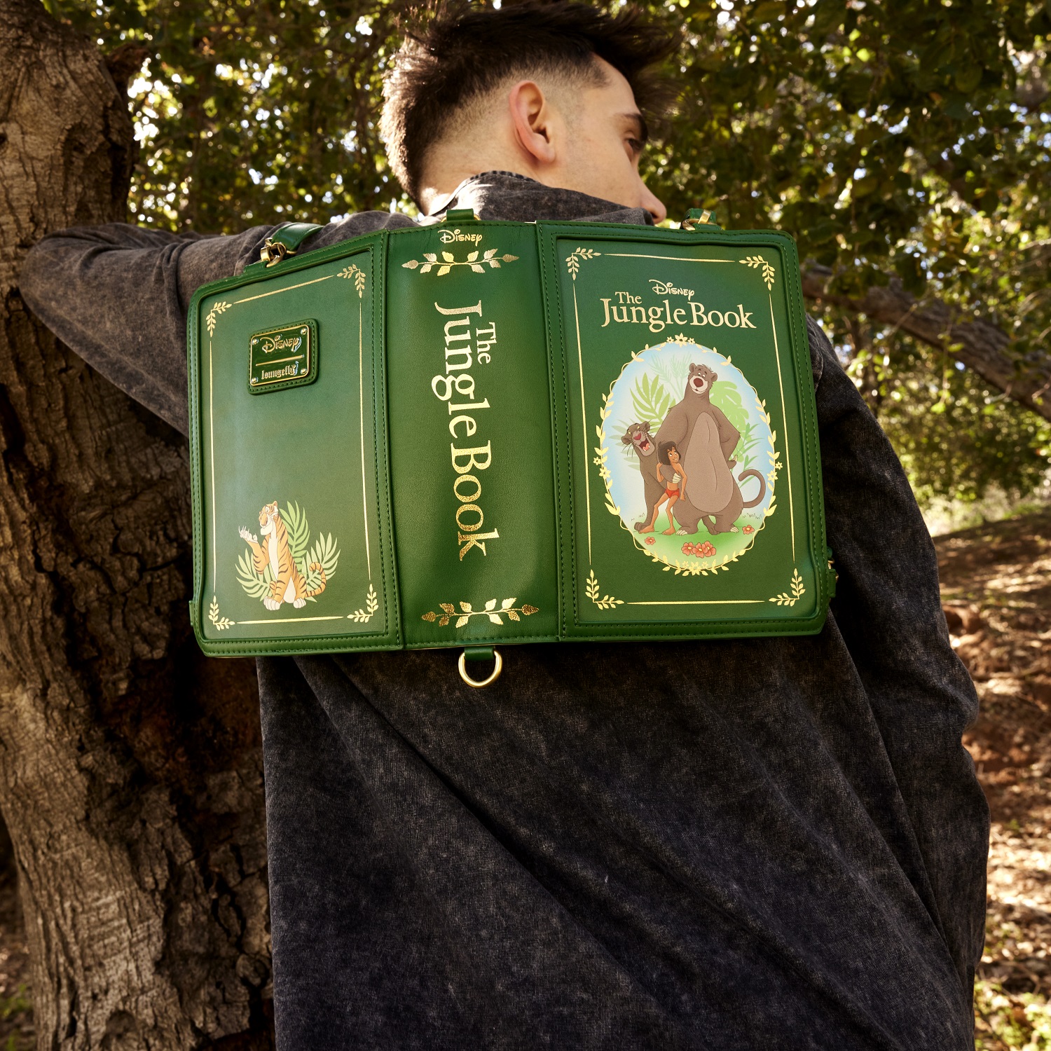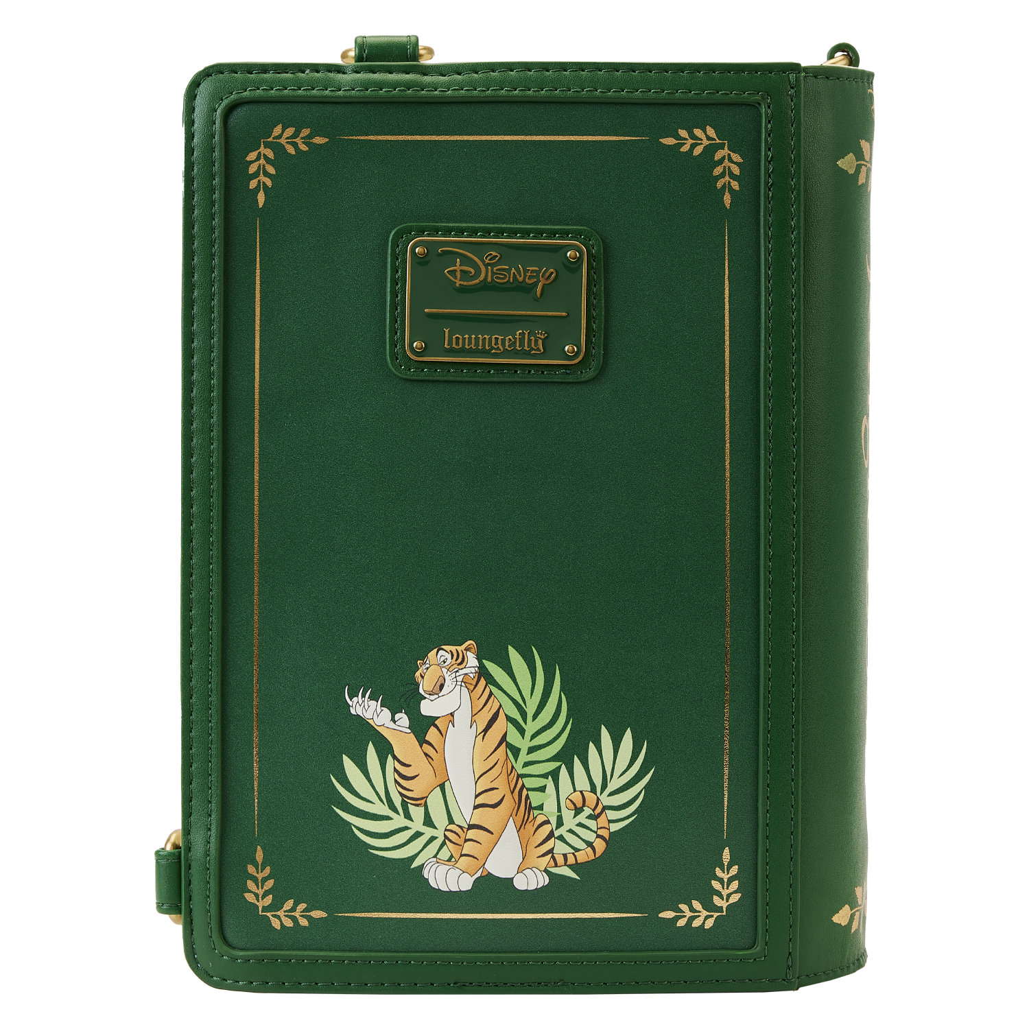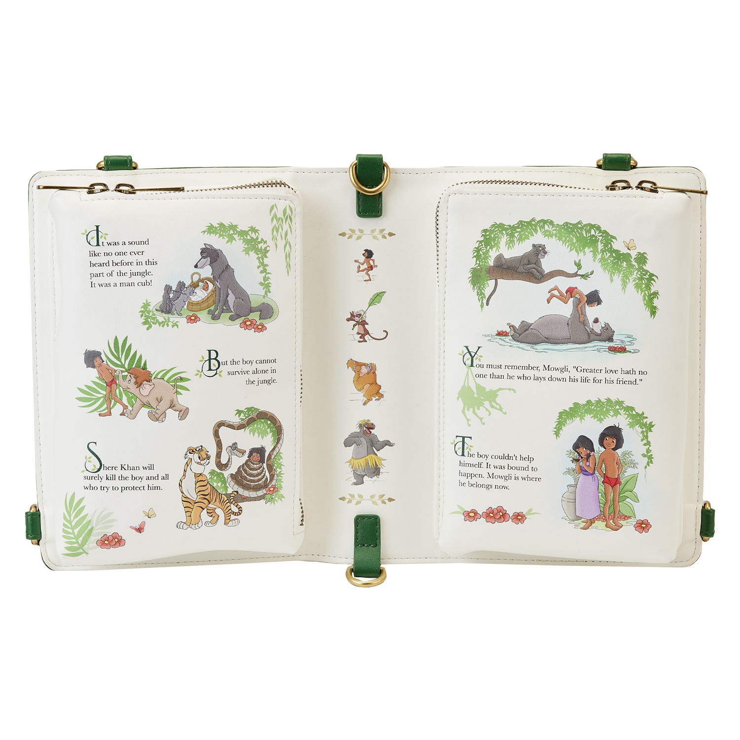 Another adventure for the books! Carry our Loungefly Disney The Jungle Book Convertible Crossbody Bag and let the fun begin. This beautiful interpretation of a Disney classic book features a “front cover” with gold foil lettering on the front and down the “spine.” Cherished characters gather in the jungle, including Mowgli, Baloo, and Bagheera. On the back, Shere Khan shows off his claws. Inside, hand-drawn, original illustrations bring characters and scenes to life. These characters include King Louie; Mowgli; Bagheera; Kaa; Raksha, Rama, and their cubs; Hathi Jr., Shere Khan; Baloo, and more. Not only do they appear on the “pages” when the book is opened but also down the middle. Easily convertible, this bag can transform into a backpack with the book lying open against your back or can be worn closed as a crossbody purse. With secure zipper pockets disguised as book pages, this multi-function bag is the perfect accessory for all the wondrous outings you’ve bookmarked.