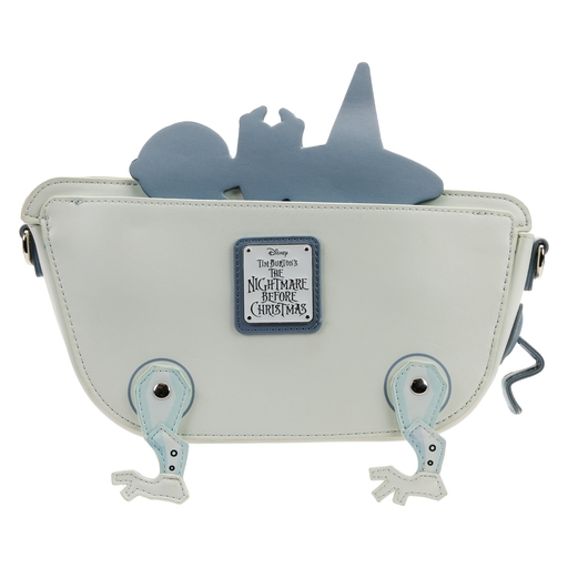The Loungefly Nightmare Before Christmas Lock Shock and Barrel Bathtub Crossbody Bag is made of vegan leather (polyurethane). Bag has adjustable, removeable shoulder strap and sturdy metal hardware. Additional features include applique, printed, and glow-in-the-dark details. Take note of the coordinating inside lining.