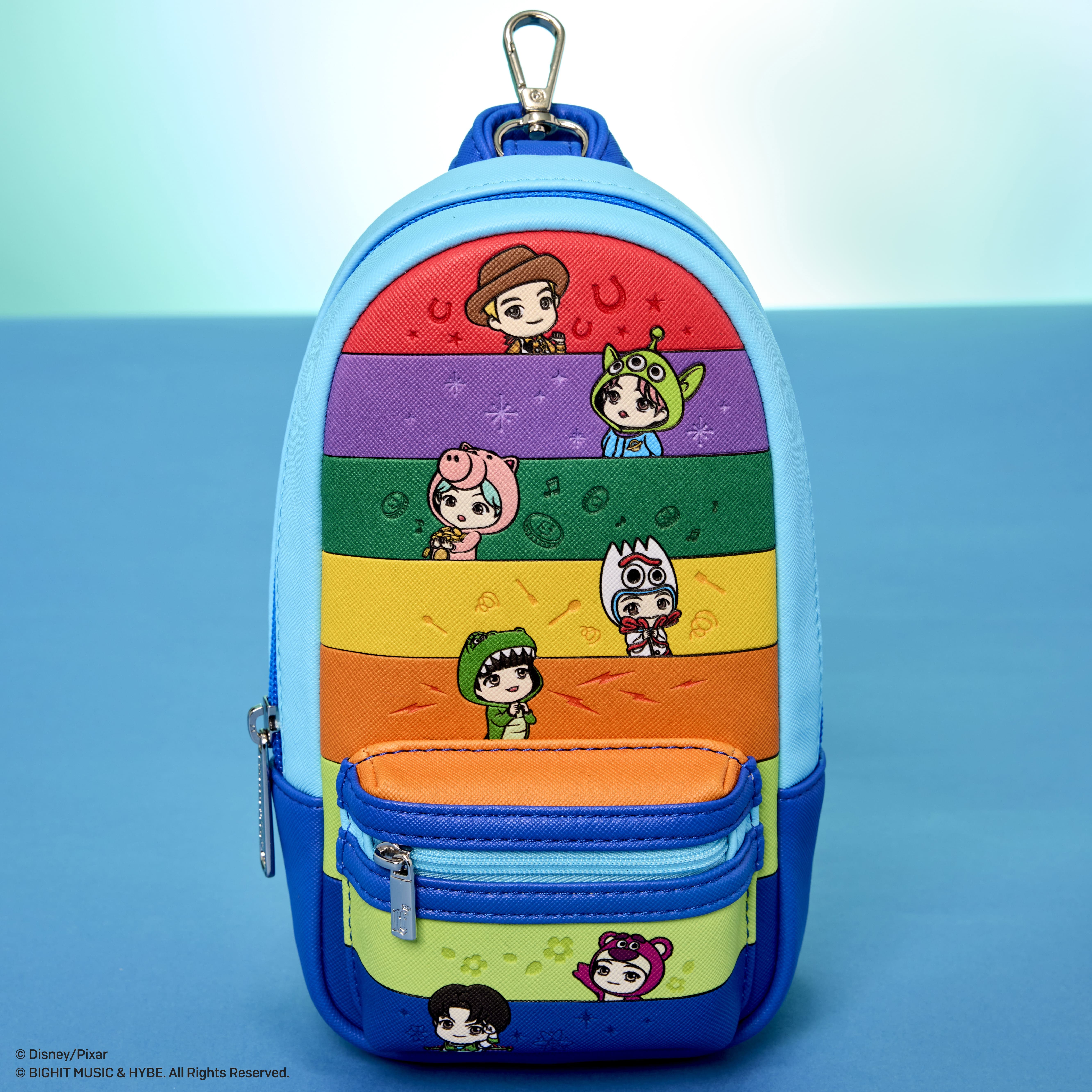 Ready to play up your look, BTS fans? This TinyTAN BTS pencil holder features the band members dressed as characters from Disney Pixar’s Toy Story. Keep everything you need handy for when inspiration strikes. On the front, you’ll find printed images of the following band members: RM dressed as Disney Pixar’s Woody, Jin as the Alien, Suga as Hamm, j-hope dressed as Forky, Jimin as Rex, V dressed as Lotso, and Jung Kook as Buzz Lightyear. Color-blocking panels behind each band member--and debossed images of accessories associated with each Disney Pixar character--add extra-fun details