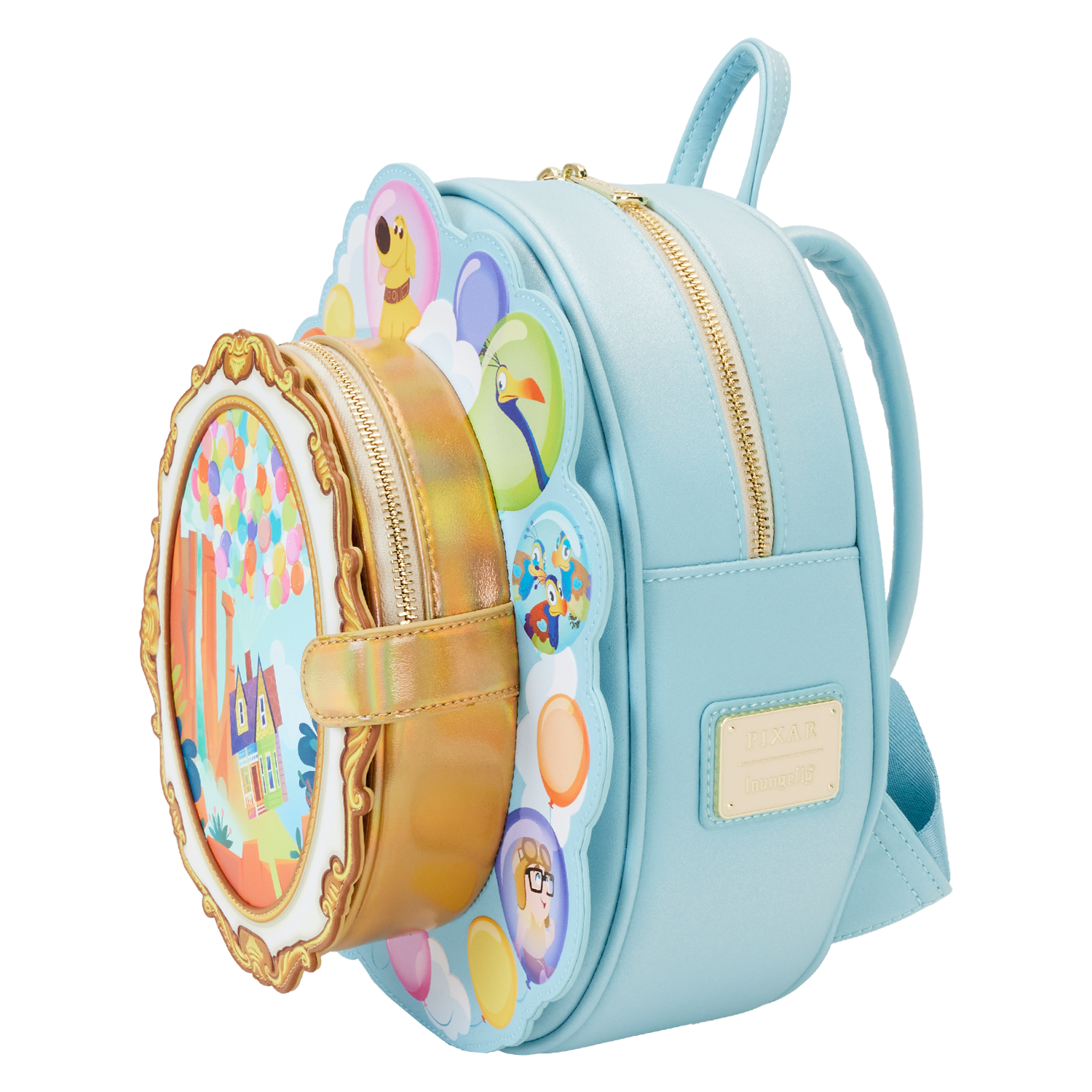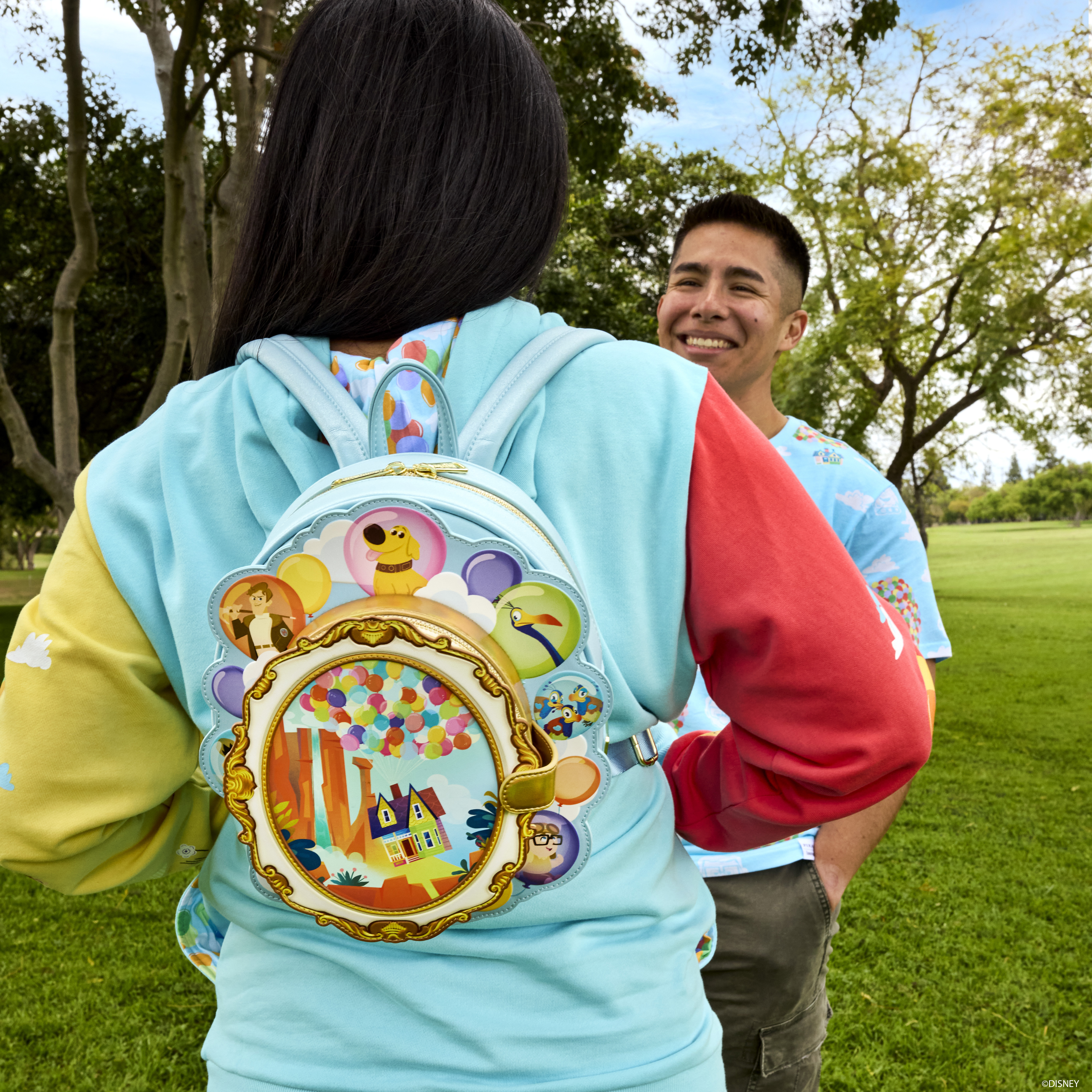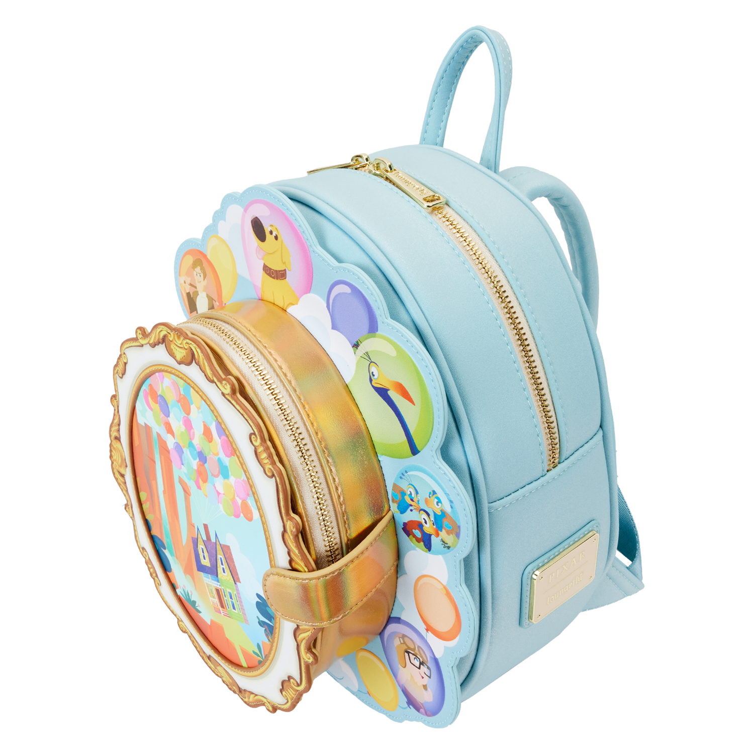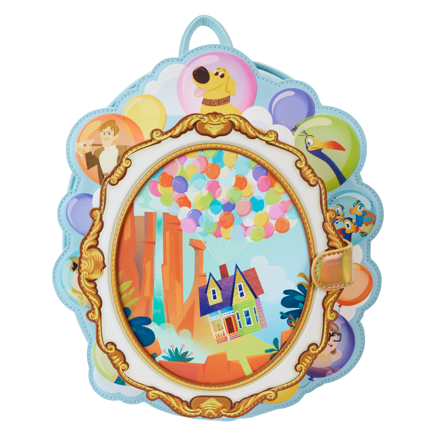 Life is one big adventure! Celebrate the story of a beloved animated classic with the Exclusive Loungefly Disney-Pixar Up 15th Anniversary Carl and Ellie Cameo Mini Backpack. On the front zipper pocket, a gilded frame shows a picture of Carl and Ellie’s house at Paradise Falls. Open the frame to reveal photos of Carl and Ellie, which use lenticular details to highlight the passage of time. Clouds and balloons form a border around the zipper pocket, displaying portraits of Russel, Charles Muntz, Dug, Kevin with her babies, and a young Ellie and Carl. A grape soda pin appears near Ellie’s note on the back of the bag. This mini backpack makes a heartwarming addition to any outfit and is perfect for fans looking to keep their favorite characters close.