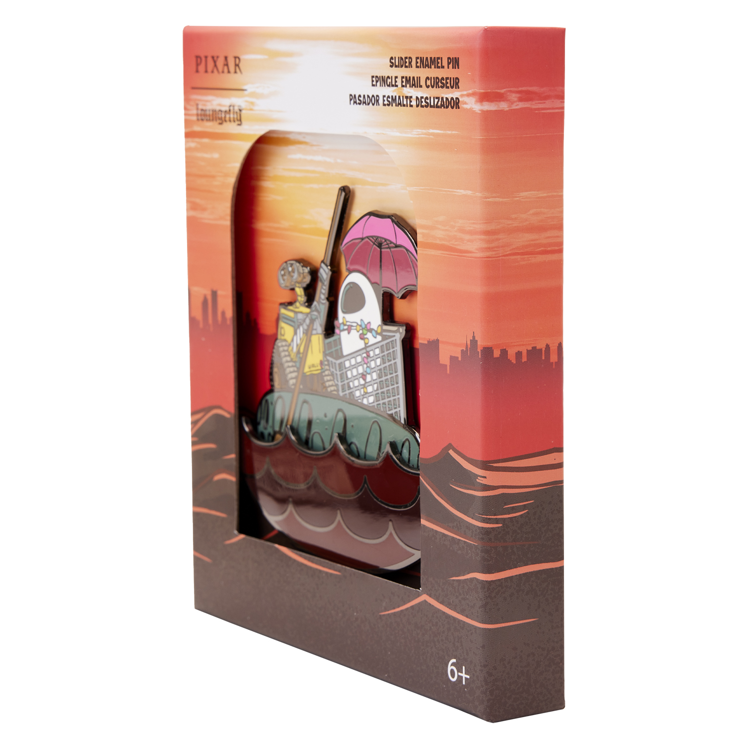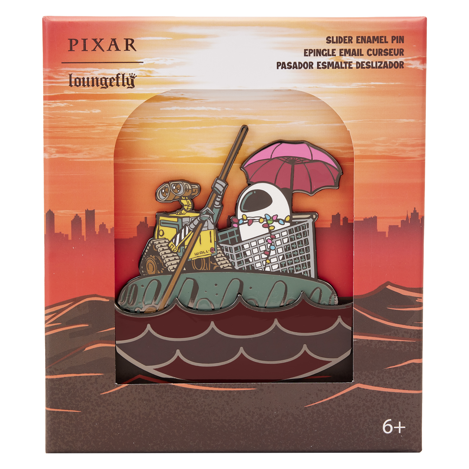 Set sail on the perfect date! The Loungefly Pixar Moments WALL-E Date Night Sliding Pin displays a romantic seaside rendezvous. As WALL-E gives EVE a tour on a homemade raft, the couple bobs up and down on the waves. Perfect for sweethearts, this out-of-this-world accessory adds a breath of fresh air to any Disney-Pixar outfit.
