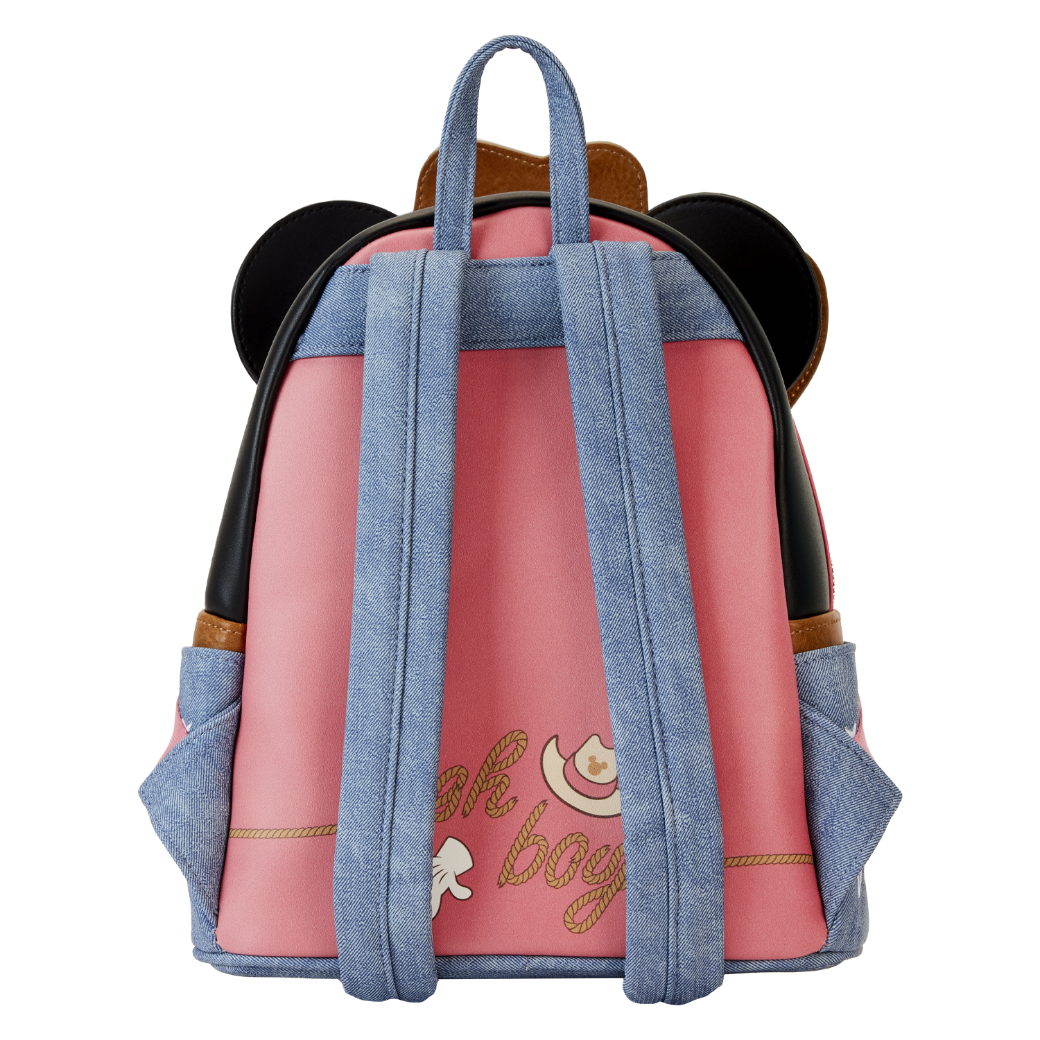 Howdy, pals! This cowboy is here to show you the ropes. Wrangle the fashion of the wild frontier with the Loungefly Western Mickey Mouse Cosplay Mini Backpack, where Mickey is dressed in his finest ranch attire. On the front, Mickey’s ears pop through a textured wide-brimmed hat while embroidered details highlight his facial features. Down below, the bag’s front zipper pocket shows his checkered shirt and coordinating bandana scarf. A shiny gold belt buckle ties the look together as it sits above his denim pants. Turn the bag around to see embroidered paisley motifs appear on the side pockets, and look for Mickey’s signature catchphrase written in rope on the bag’s back. This accessory makes the perfect partner for any adventure and will keep your belongings safe at home and on the range.