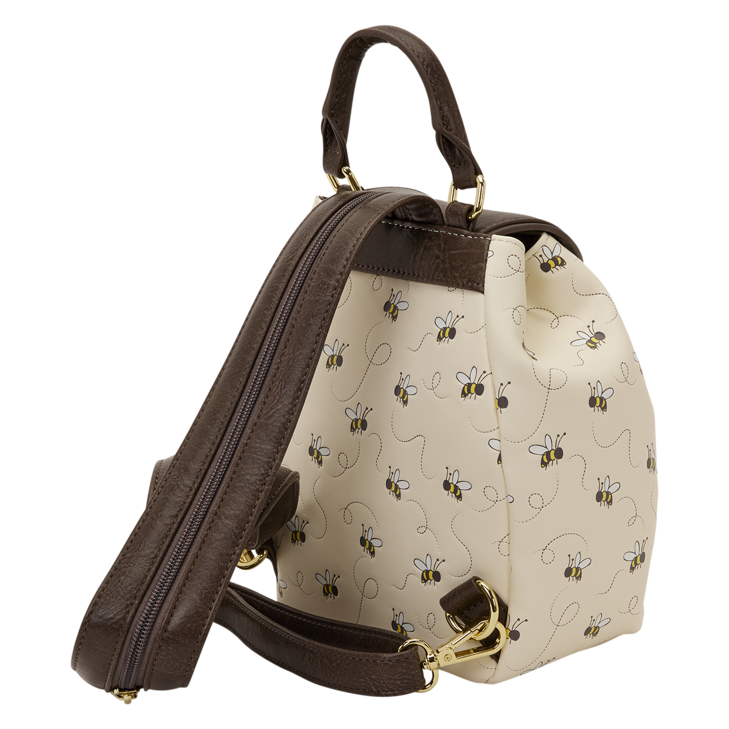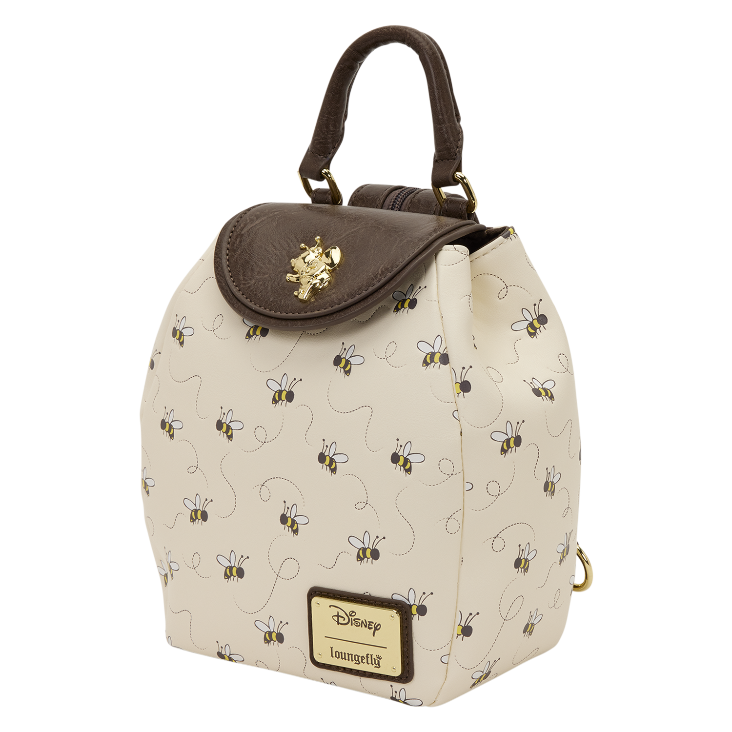 This micro mini backpack is smaller than our traditional mini backpack silhouette. All over, you'll find an embossed pattern of hunny bees buzzing about. The top flap features a 3D molded metal charm of Winnie the Pooh! The bag can convert from a micro mini backpack to a sling by zipping the two halves of the strap together to make it one! Get ready for any sweet adventure with this bag!
