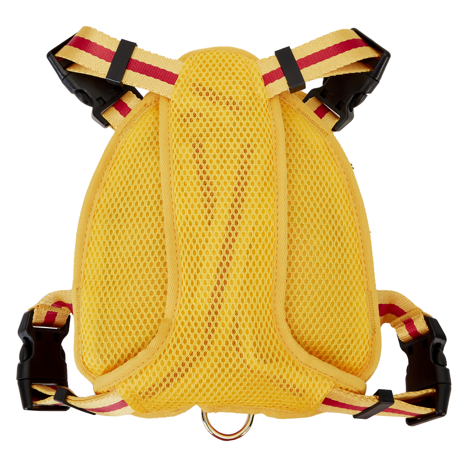 The Loungefly Disney Winnie the Pooh Cosplay Dog Harness is made of durable vegan leather (polyurethane) and features applique, embroidered, and printed details. Harness has adjustable nylon straps and shiny gold hardware. Take note of the coordinating inside lining.