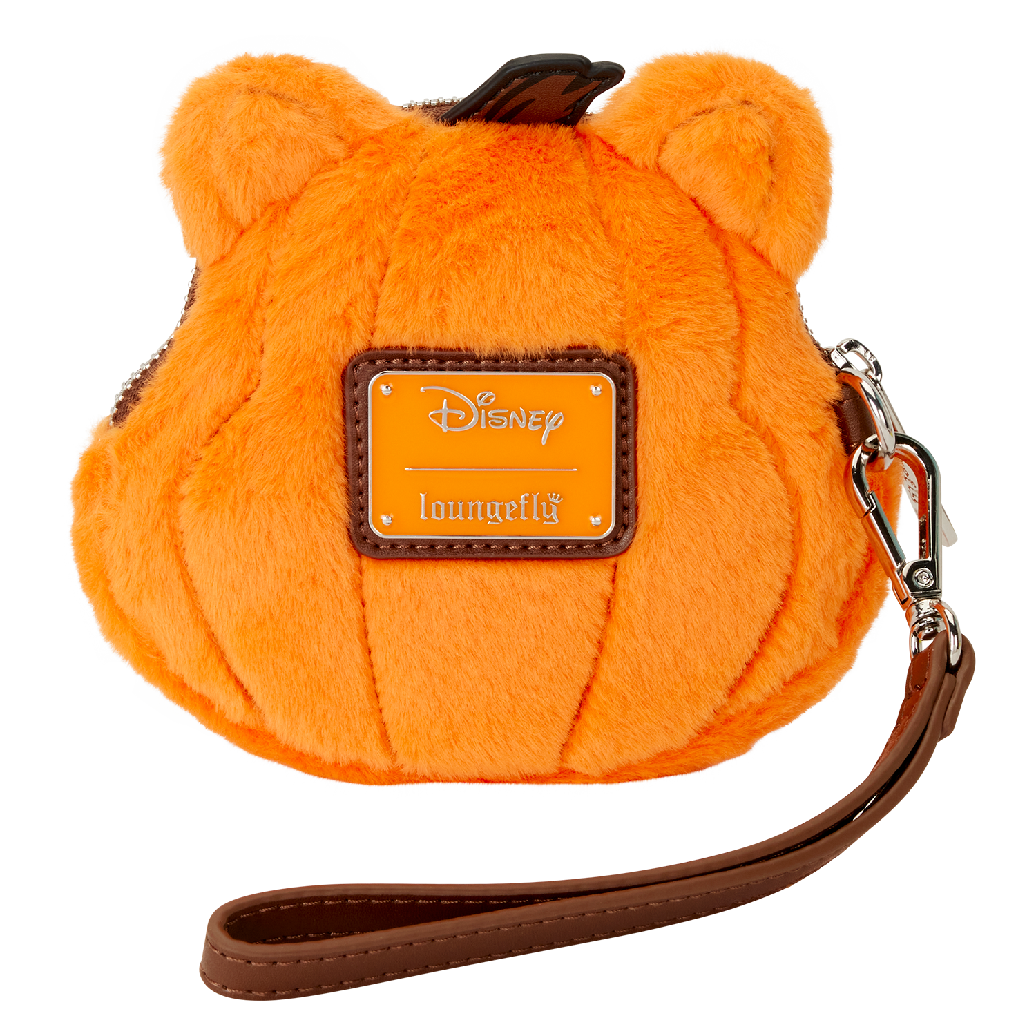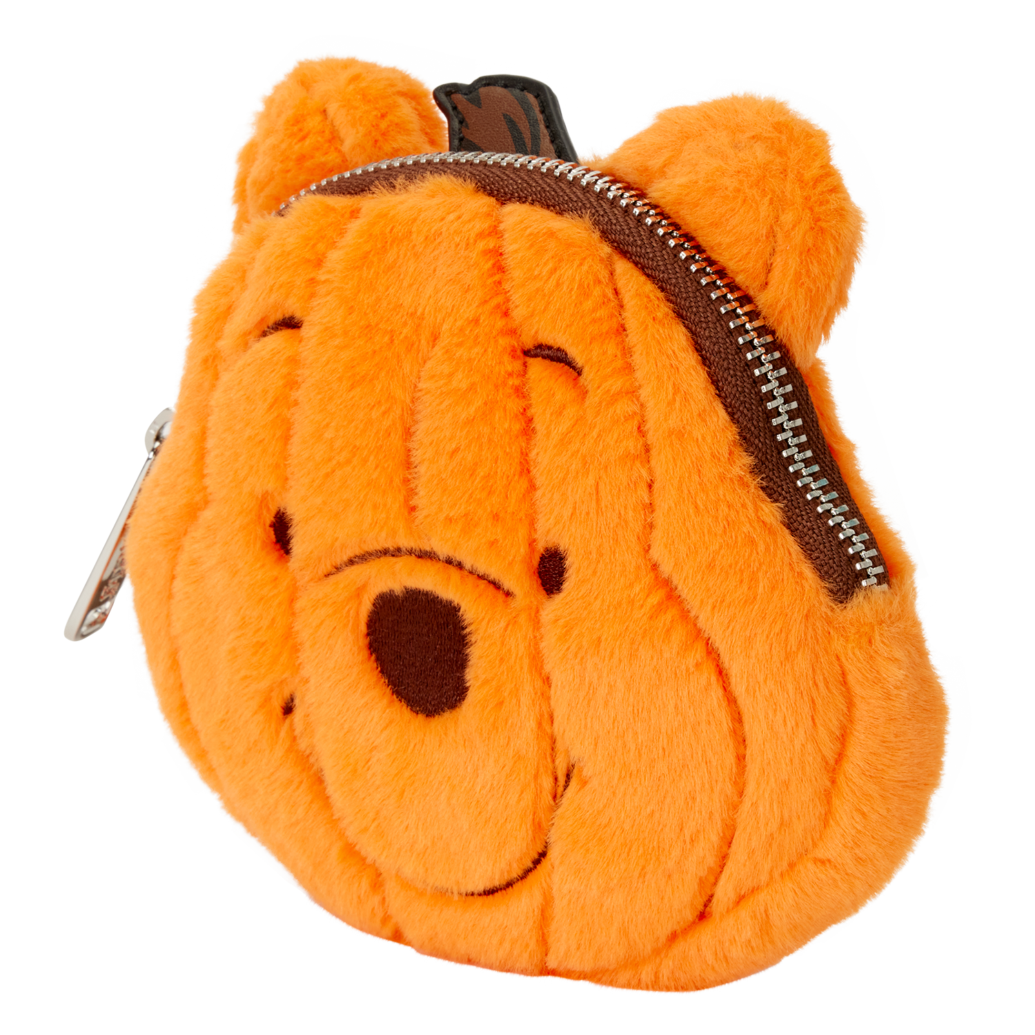 This coin bag features Winnie the Pooh as a pumpkin, complete with 3D stem and ears! It's plush all over and features embroidered facial details. A detachable wristlet strap allows you to carry it however you'd like!