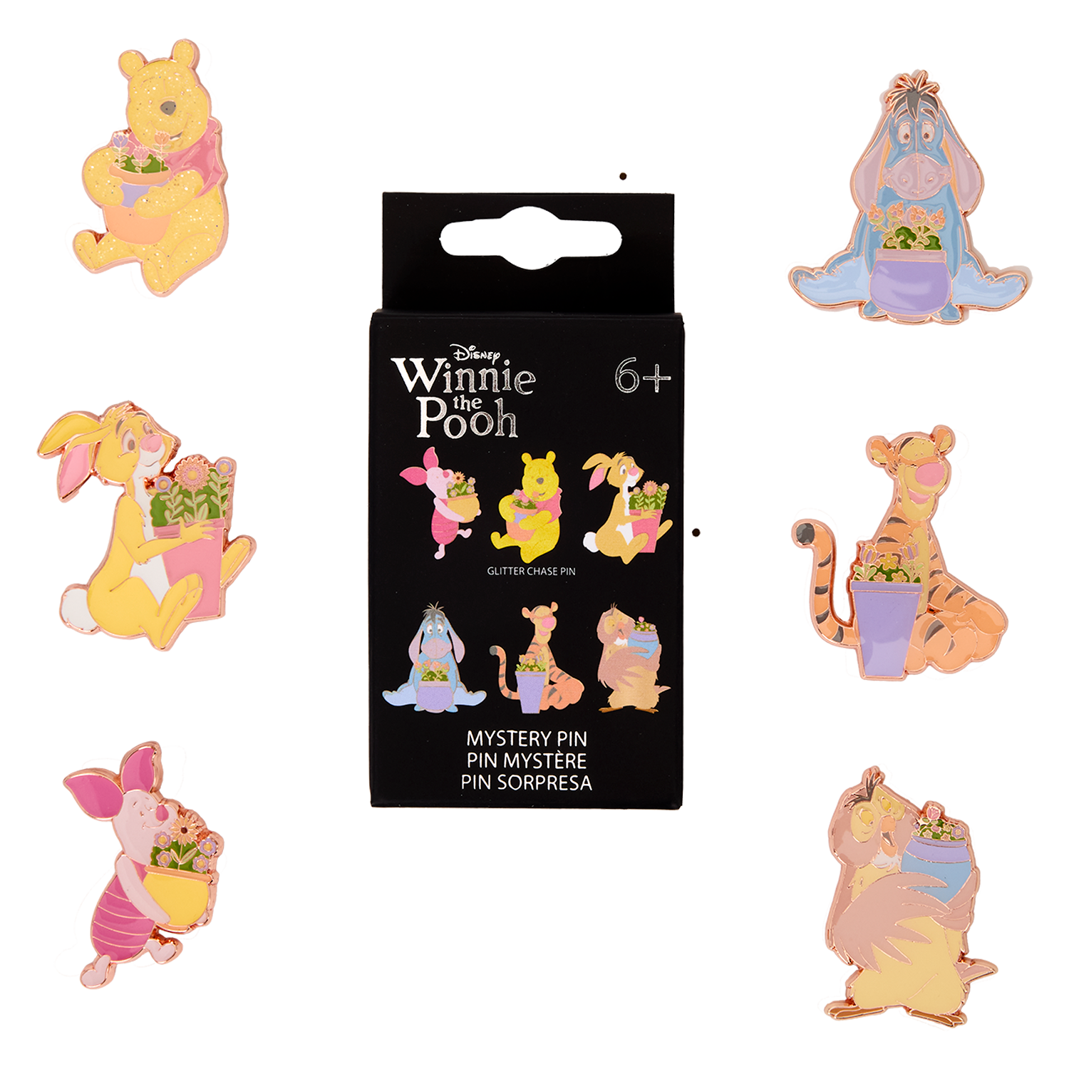 Each of these pins is an individually wrapped mystery, so you don’t know which one you’ll get! There are six in total to collect: Winnie the Pooh, Piglet, Eeyore, Tigger, Rabbit, and Owl. Each holds an adorable flowerpot!