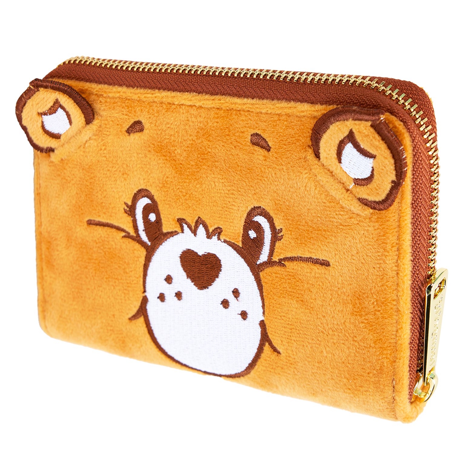 Share smiles to your heart’s content with our exclusive Tenderheart Bear™ plush zip-around wallet. The front features Tenderheart Bear’s adorable face, which comes to life in embroidered and applique details—and soft brown plush covers both sides of this accessory. Flip the wallet around, and you’ll find an embroidered heart in pink and red. Secure your valuables for a day of spreading kindness wherever you go.