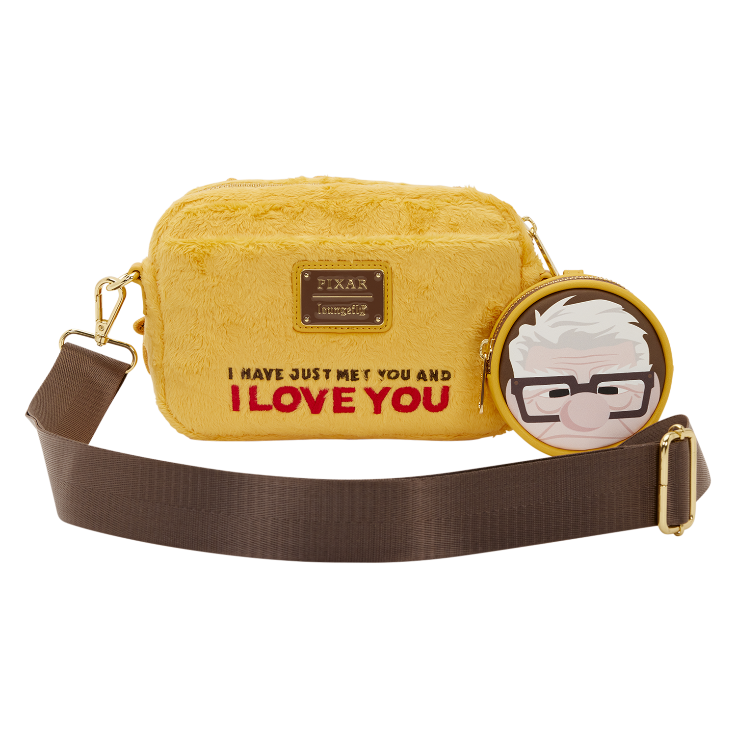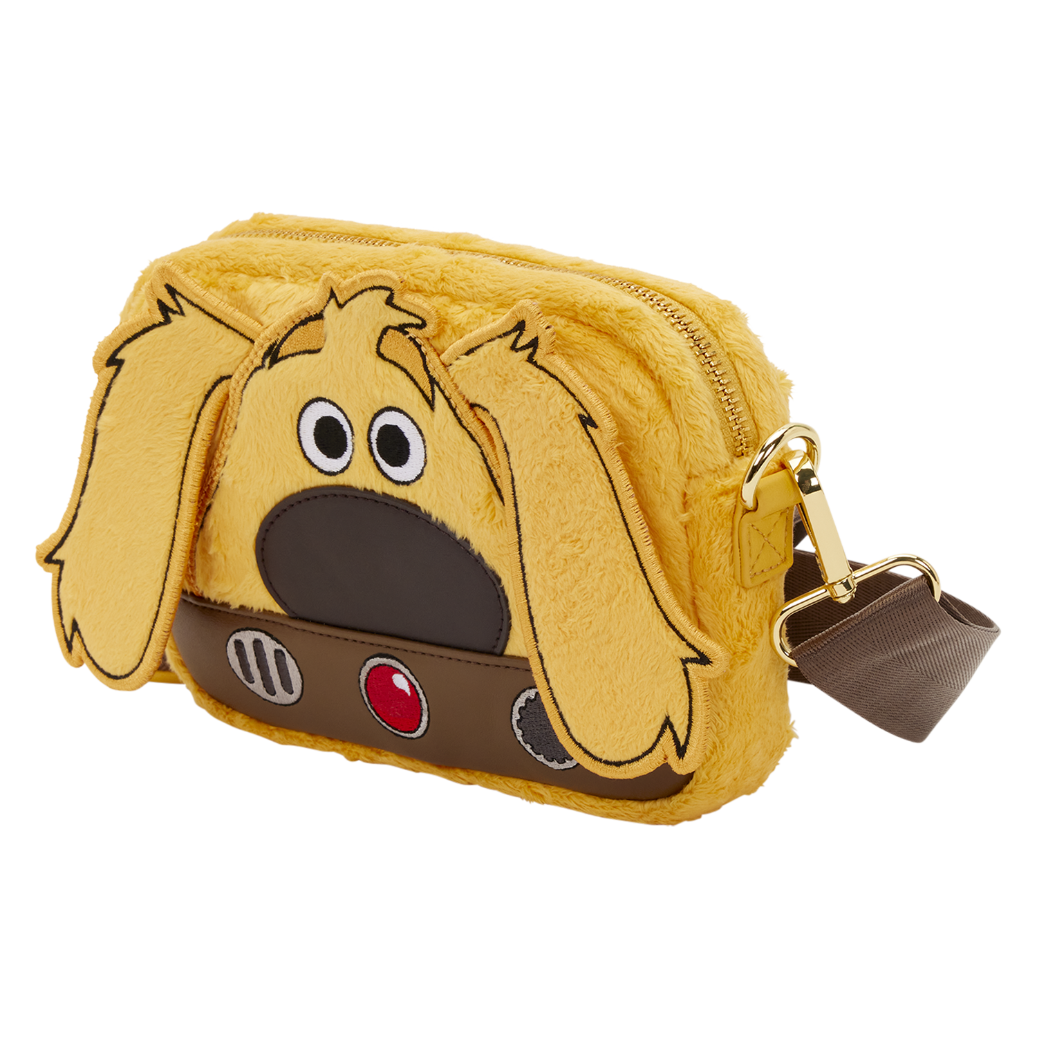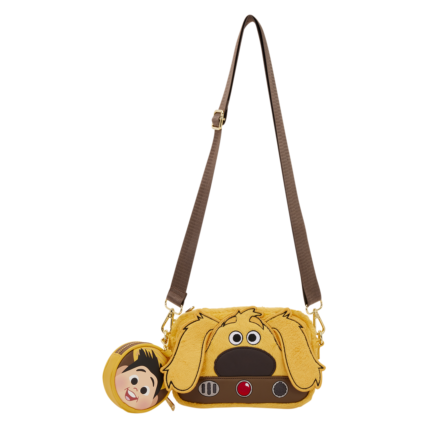 Dug comes to life on this sling bag in faux fur, applique, and embroidered detail. Turn the bag around to find his line, "I Have Just Met You, and I Love You" on the back. Plus, attached to the sling is a detachable coin bag featuring Russell on one side and Carl on the other!