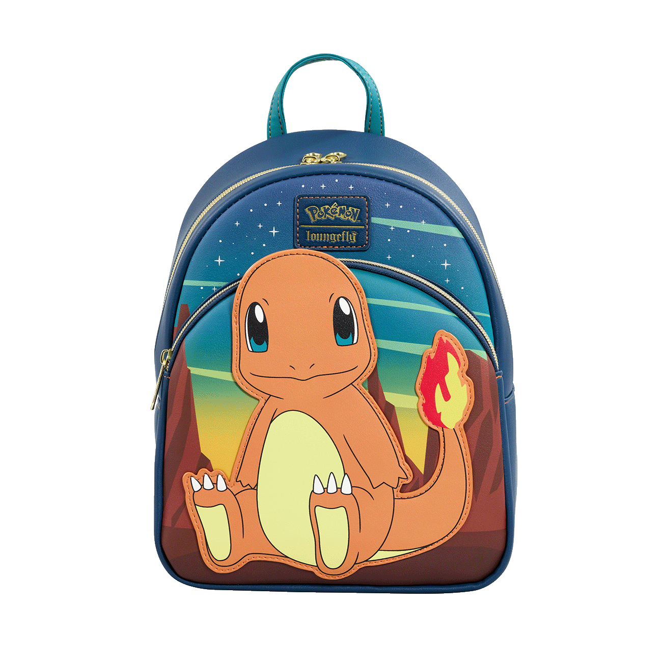 Hot on the trail of Pokémon adventures? This mini backpack featuring Charmander would make the perfect accessory. Charmander’s applique rises up over the front pocket, and a desert-themed landscape unfolds in the background. Stars appear above, and in the dark, they glow! Pack your daily essentials and get the ball rolling in style.