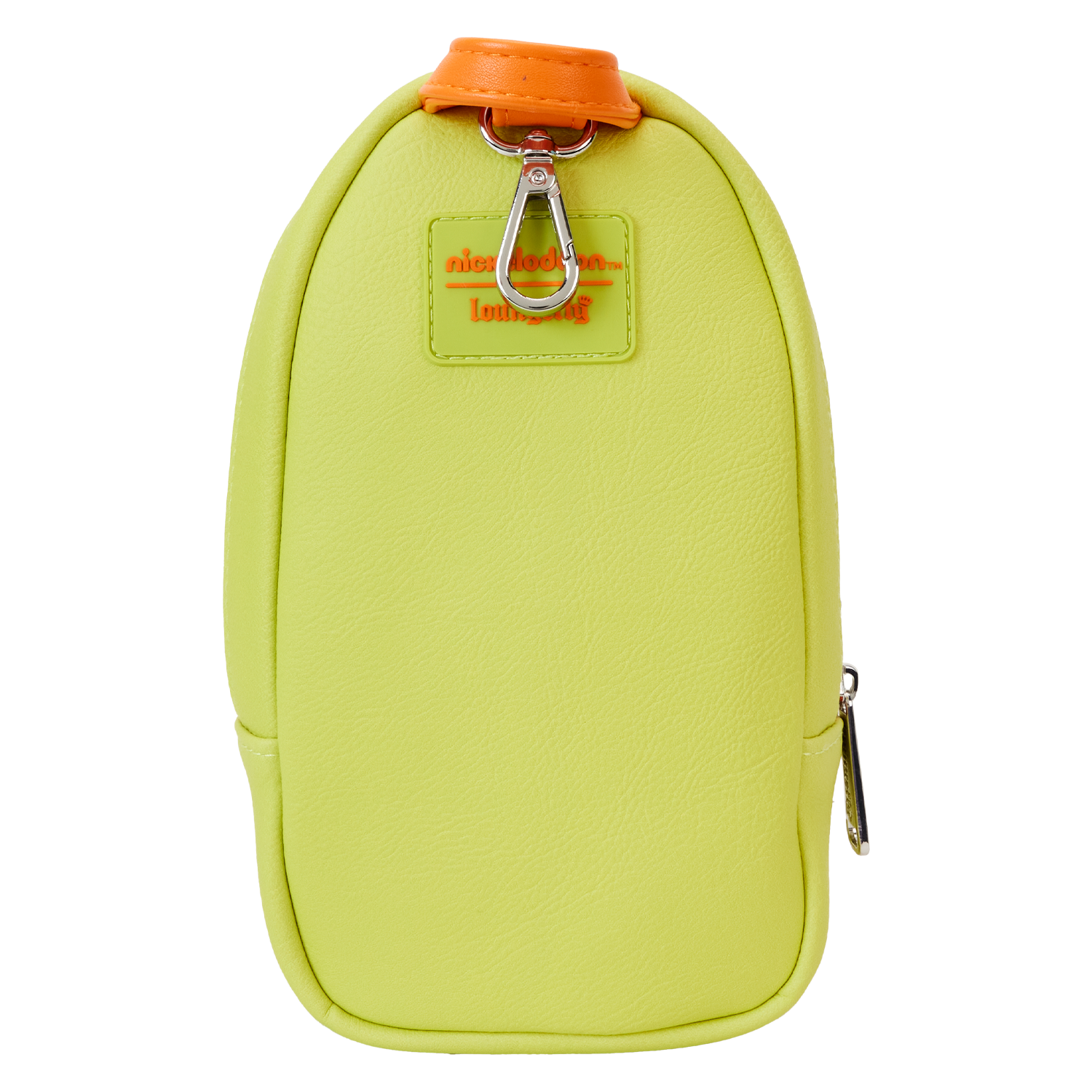 Monster, hero, mascot… this giant green dinosaur can do it all! This textured pencil case inspires a scaly feel worthy of the one and only Reptar. A candy bar wrapper appears on the front pocket, and embroidered details bring Reptar’s ferocious facial features to life. Bring this larger-than-life reptile along on your next adventure to add some nostalgia to your notetaking endeavors!