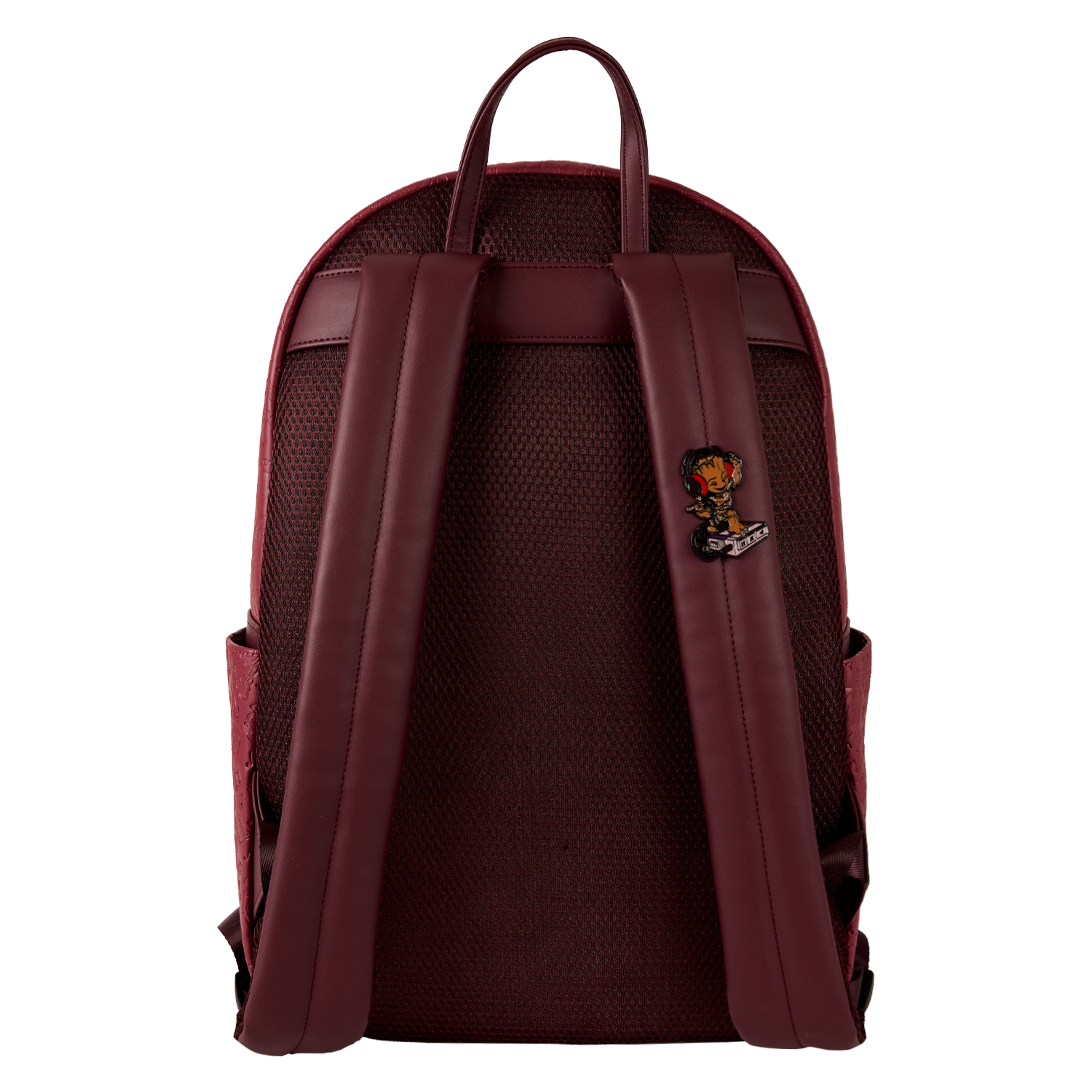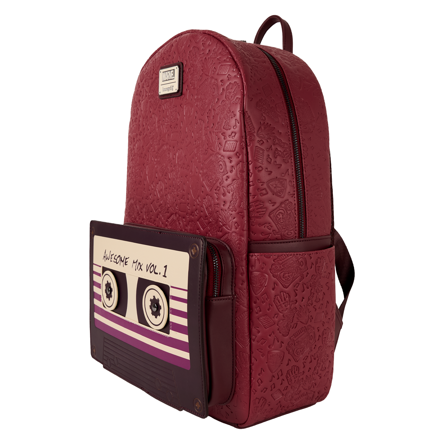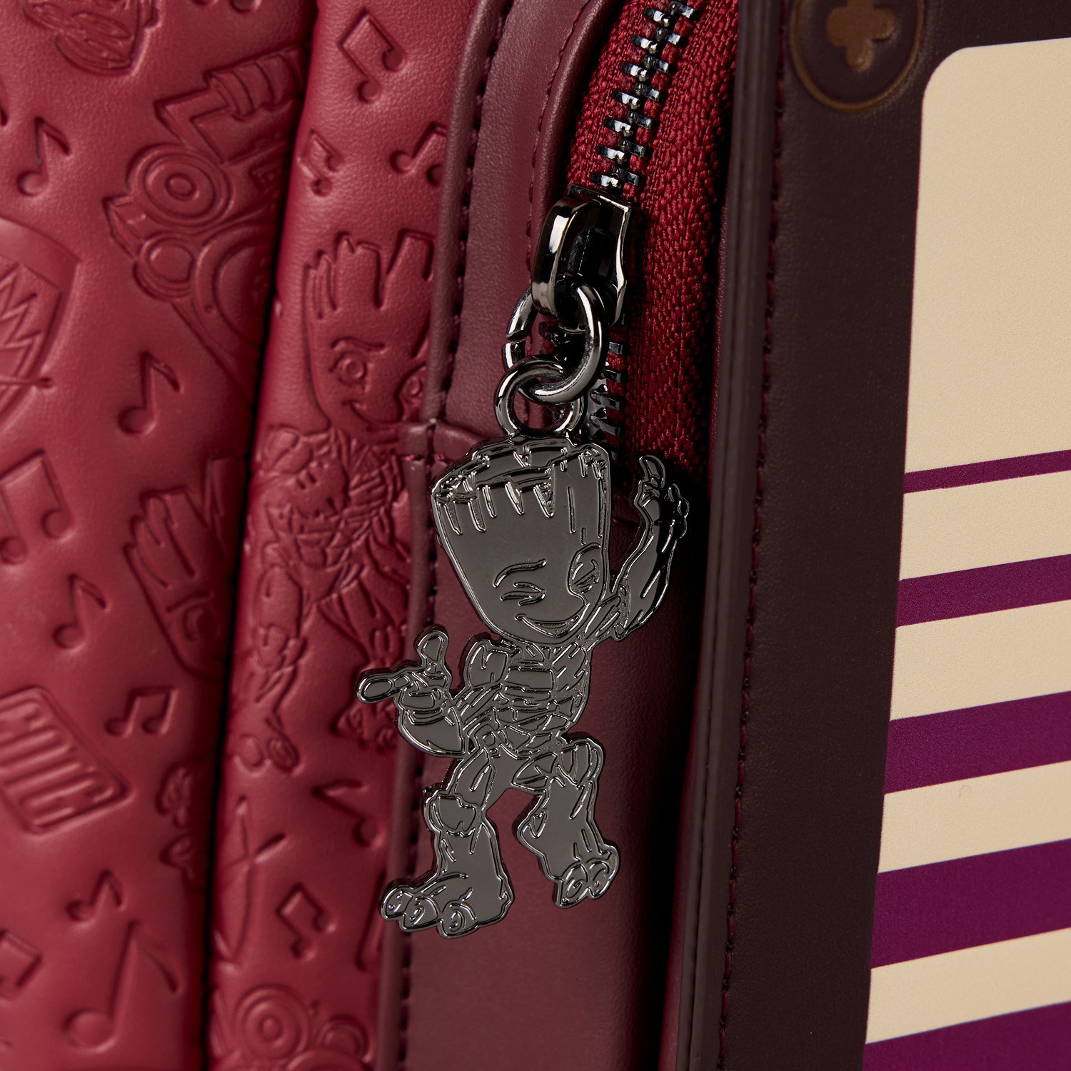 This backpack is inspired by Groot from Marvel's Guardians of the Galaxy. The front pocket is in the shape of a cassette tape that's labeled as "Awesome Mix Vol. 1." The tape reels move on a spinning rivet! All over, you'll find a debossed pattern of cassettes, Groot, music notes, and more! For another fun touch, you'll find Groot on the zipper pull and an enamel pin of him on the strap!