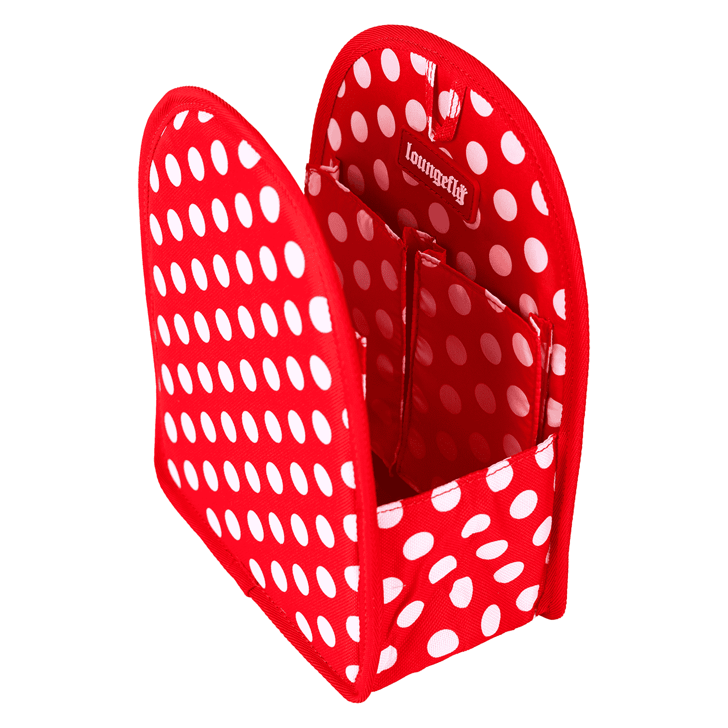 Arrive on the dot in style with this polka-dot mini backpack insert organizer. A red background makes the white polka-dotted pattern pop. This accessory is a fashionable and convenient way to travel. It comes with utility loops, making it easy to drop the organizer inside a standard-sized Loungefly mini backpack—and take it out again. Compartments, pockets, zippers, and nylon straps with lobster clips and D-rings will help you keep your items secure and within reach on daily outings. Show off your fandom while this heavy-duty and durable organizer does the heavy lifting to keep everything in place.