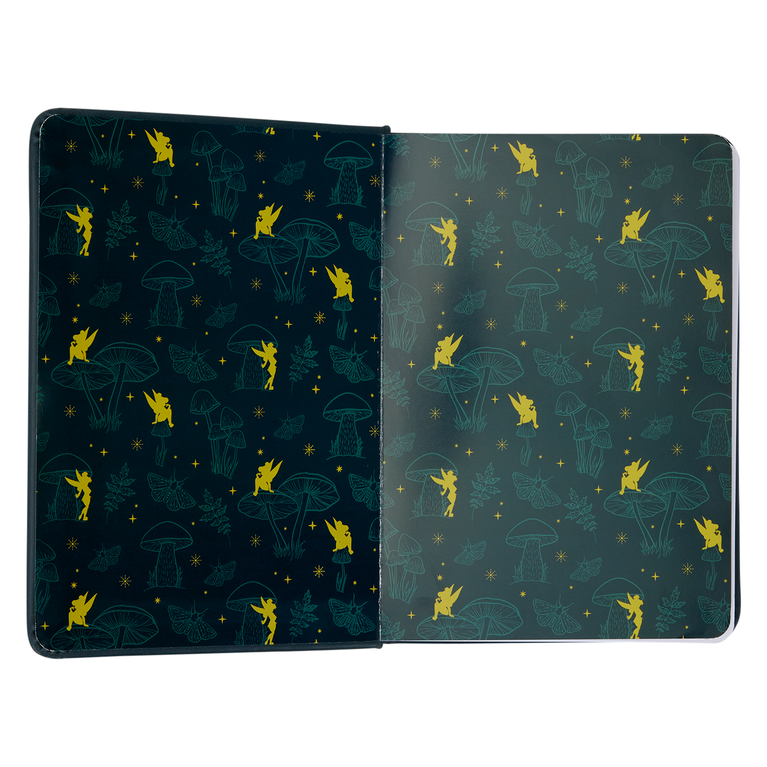 This journal features Disney’s Tinker Bell on the front sitting on a mushroom. Butterflies fly around her. On the back, you'll find another image of Tinker Bell surrounded by more butterflies. This journal features lined pages with images of Tinker Bell and mushrooms in the corners. When you finish filling up the journal, you can buy a paper refill and keep using it!