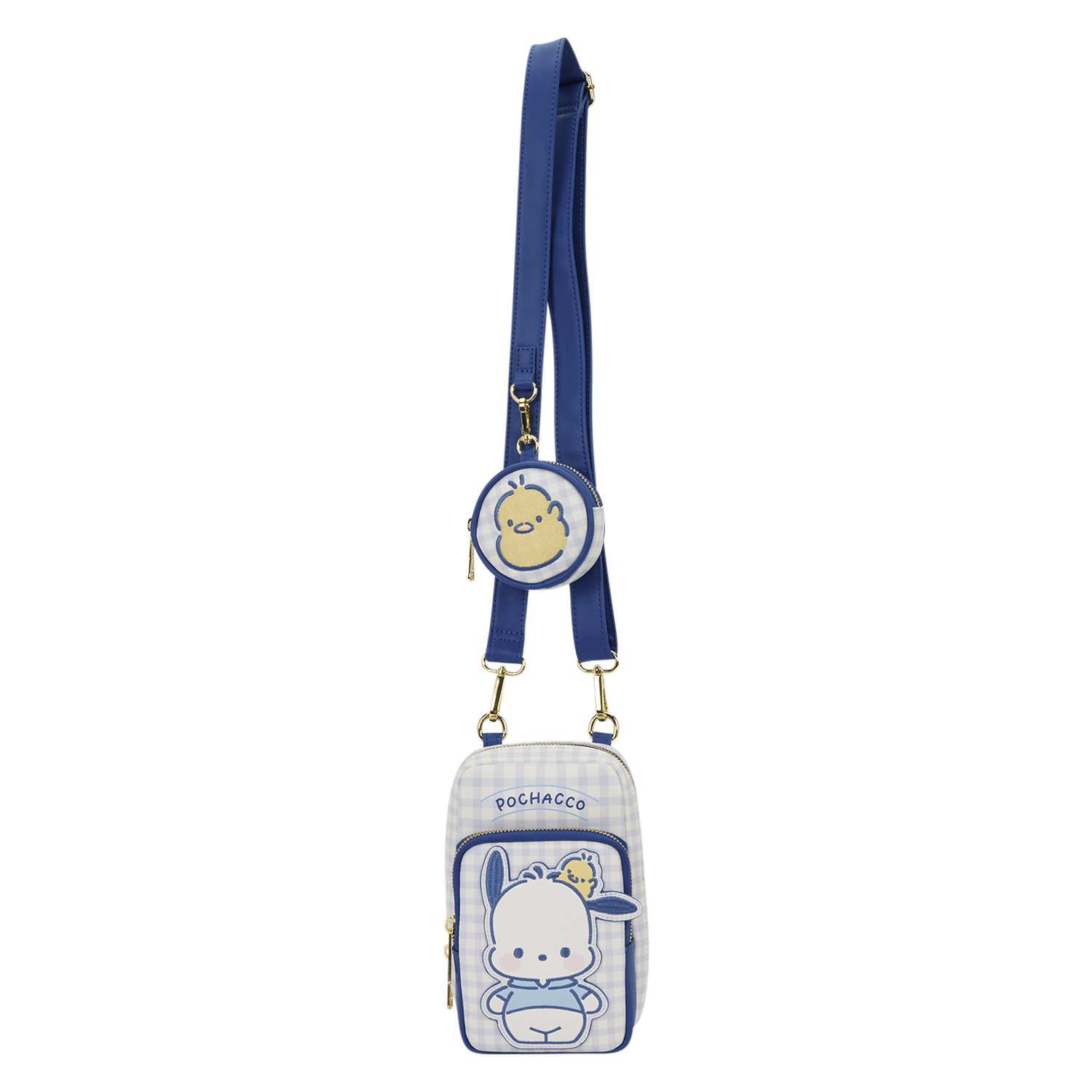 Sanrio Pochacco Gingham Cell Phone Crossbody Bag with Coin Bag