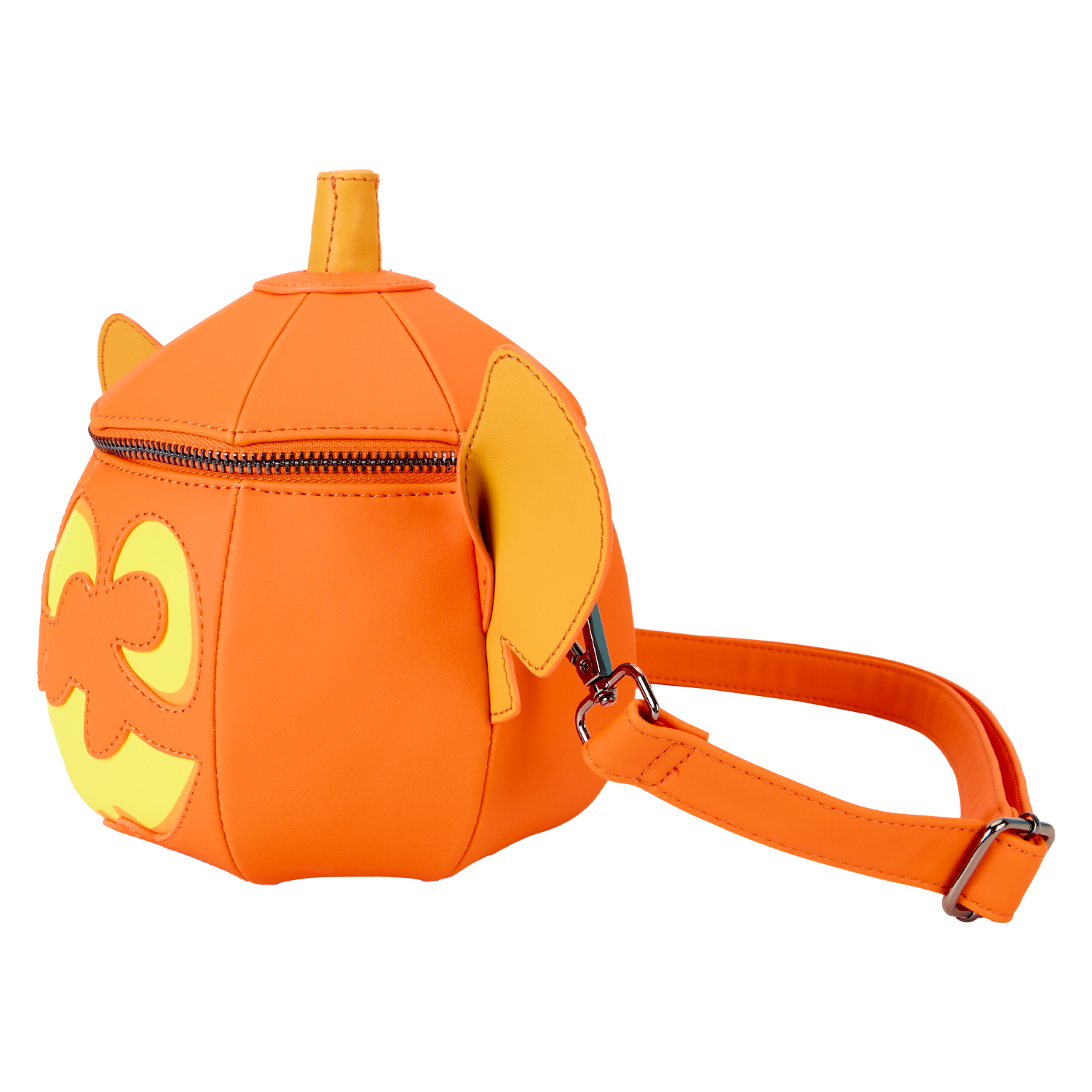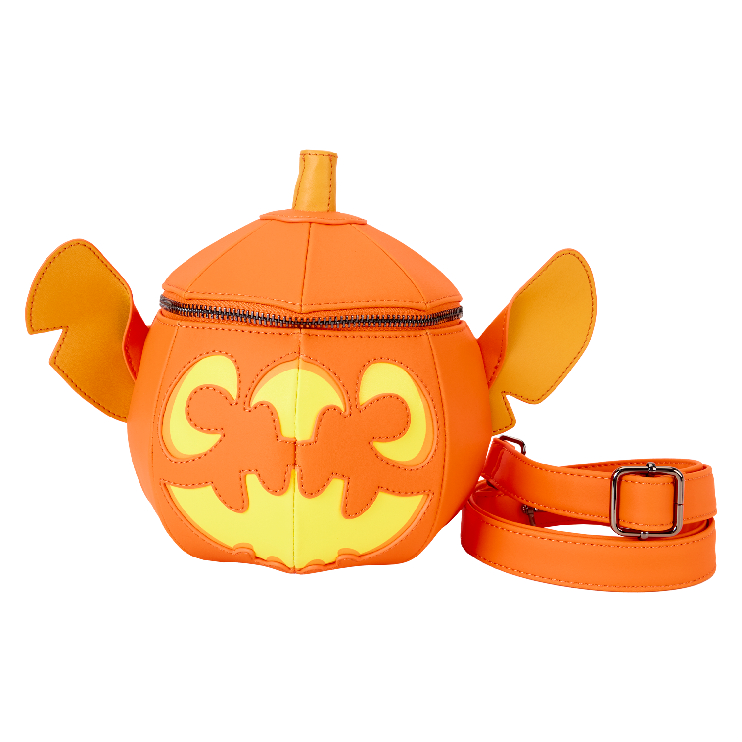 Ready to cause some mischief? Carve out some time with your favourite alien companion on this scary-fun crossbody bag. Taking the shape of a pumpkin, this design shows Stitch’s ears and smiling grin. Turn down the lights to see him glow in the dark! This accessory makes a playful addition to any outfit and has plenty of room to store your tricks and treats.
