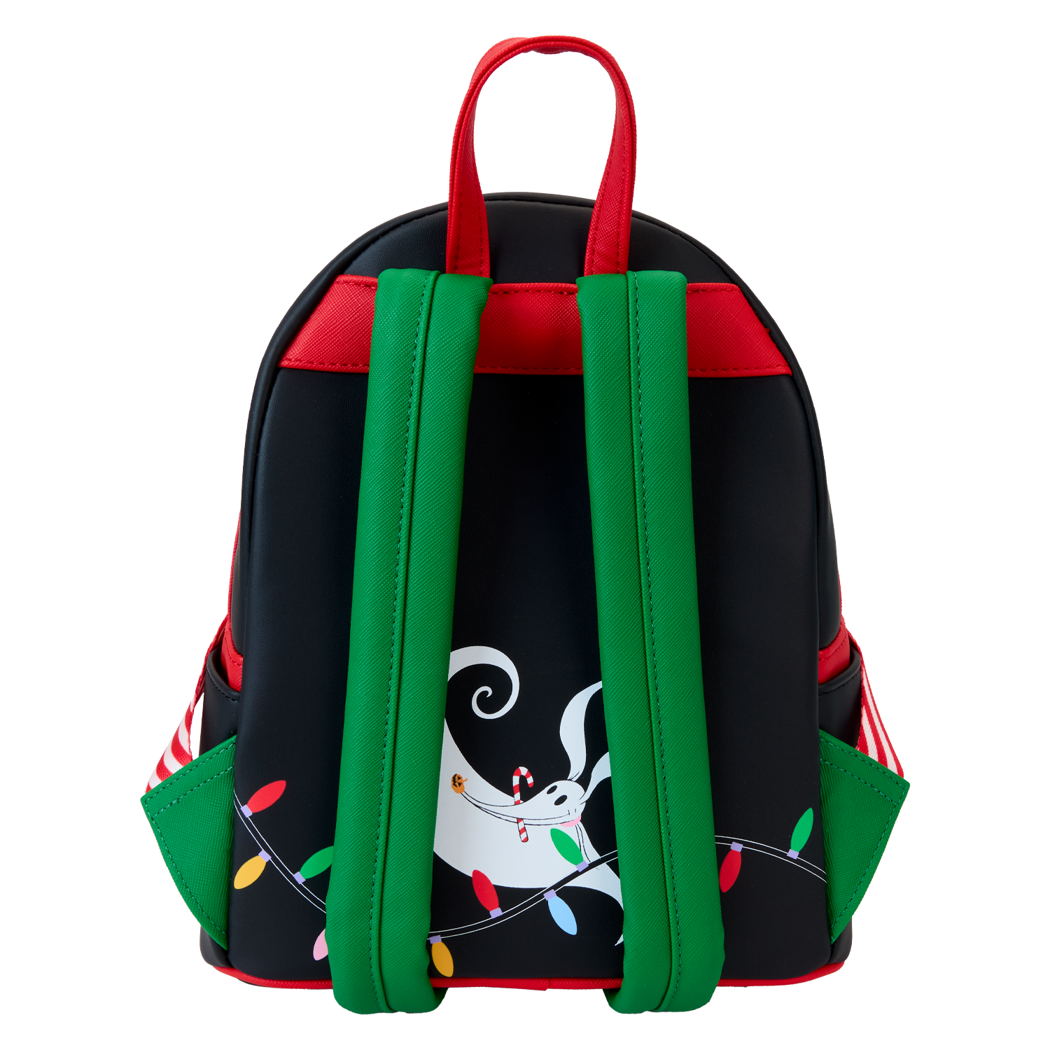 If your eyes light up at the thought of Christmas, this bag’s for you! Jack Skellington embraces the holiday spirit in a tangle of colourful lights. As daylight fades, you’ll see him glow in the dark while two of the lights illuminate with light-up details! This mini backpack makes a festive addition to any outfit and adds a bright spot to any holiday celebration.