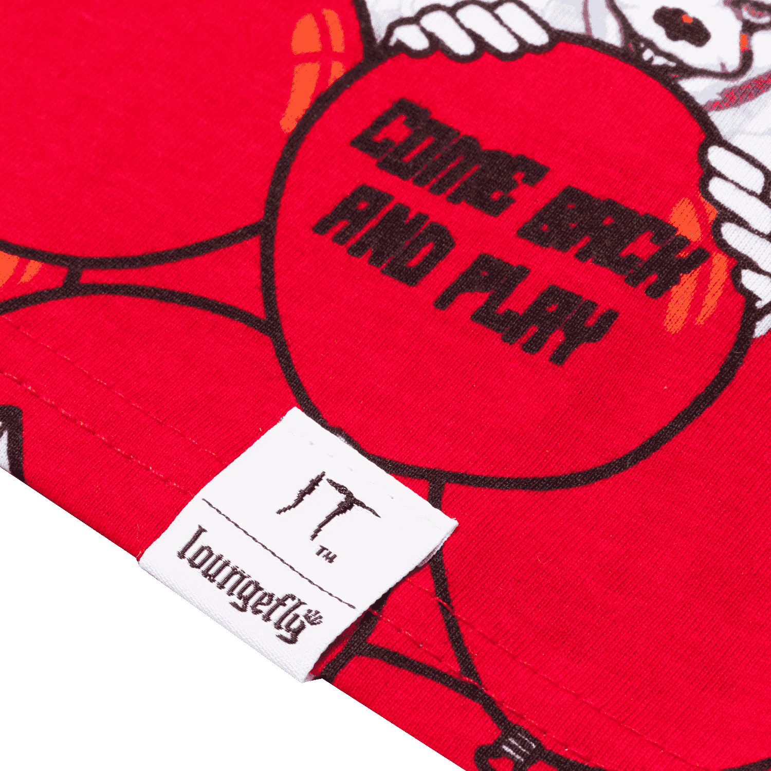 Floating the idea of making a wickedly fun entrance? Make it a reality with our IT tee shirt. This wickedly fun tee is ready for a jump scare with style. A brilliant motif of red balloons covers the fabric, and Pennywise makes an appearance behind a few red balloons that carry the message, “Come back and play.” Sail through your day looking frighteningly fashionable in this versatile and comfy tee.