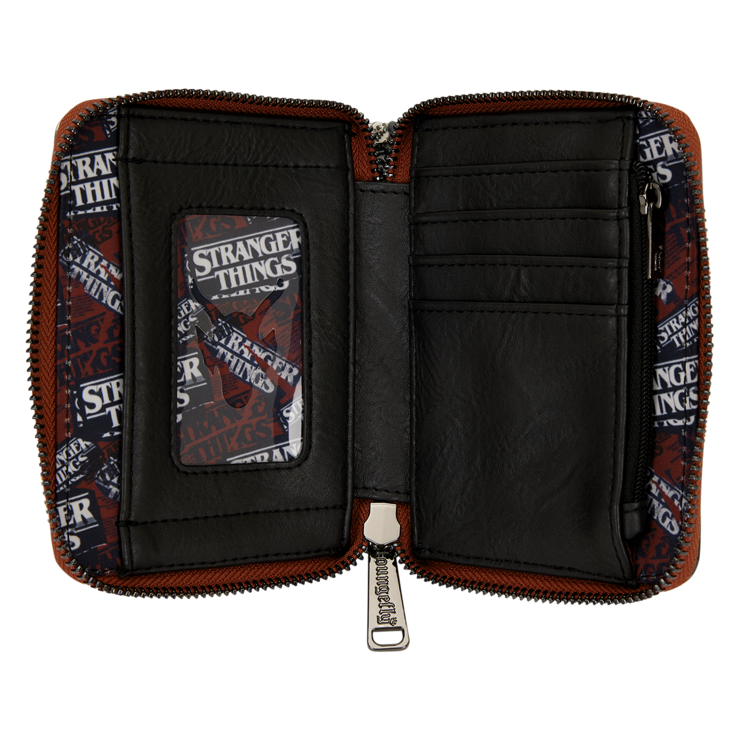 This wallet features various ads from the Hawkins Post all over. Bursting out from the front is a Demogorgon! Inside, there are four card slots and one clear ID slot. You'll also find a fun coordinating Stranger Things lining!