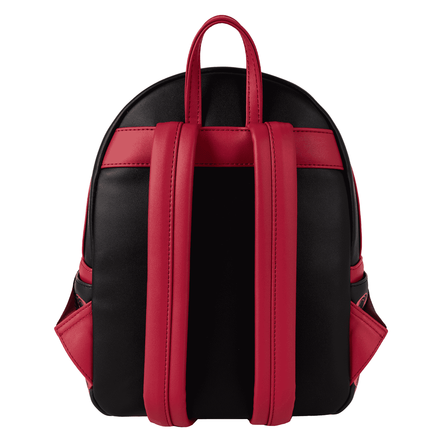 What a beautiful fright! This Bride of Frankenstein mini backpack features a stunning rendition of Frankenstein’s bride in stained-glass portrait style. Her elegant portrait comes to life on the front pocket in vibrant colour and embroidered details. She’s surrounded by red embroidered flowers, and gold-foil touches add a dramatic flair. Pack just what you need for a day of reviving your spirits while visiting favourite haunts.