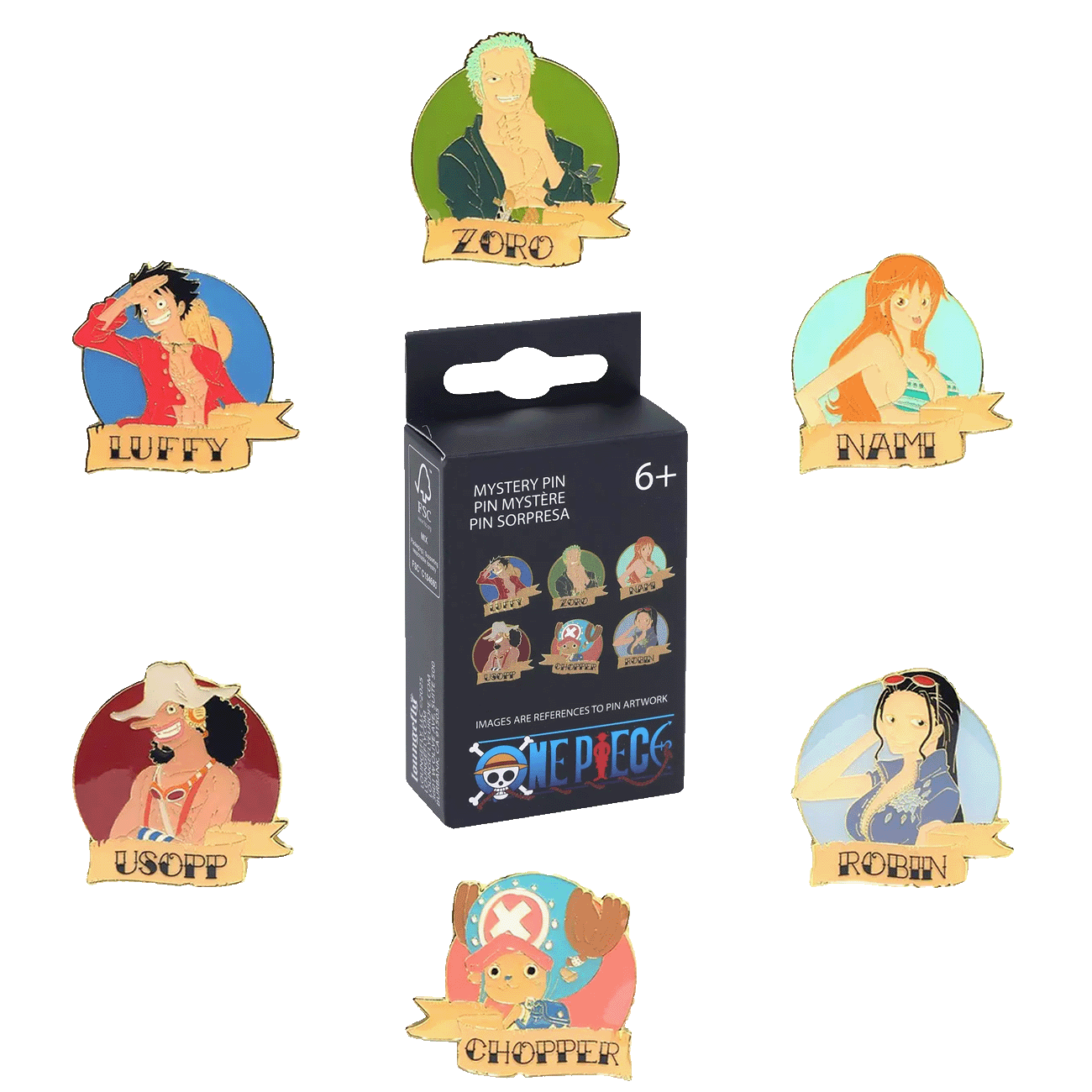 Bring some seaside charm to your collection with the One Piece Mystery Box Pin Set! Each pin features a fan-favourite character displayed above their name in a bold design inspired by the high seas. Perfect for adding a touch of adventure to your jacket, bag, or pin board. With six designs to collect, which one will you get? It’s a surprise!