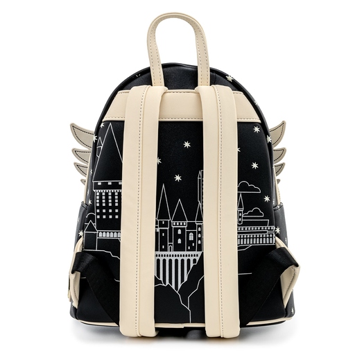 Hedwig flies into your Harry Potter Loungefly collection holding a sealed letter as the Hedwig Howler Cosplay Mini Backpack. On the back you can see the silhouette of Hogwarts Castle below stars. It’s is a magical accessory which makes a great everyday bag and complements Harry Potter inspired outfits.