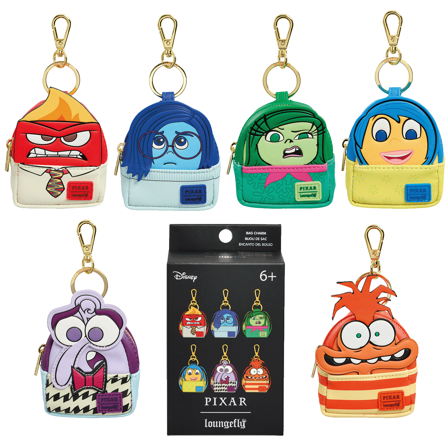 Need to express yourself in a fun, new way? We feel you! Our Pixar Inside Out 2 Mini Backpack Keychains are along for the ride. Each mini-backpack keychain is inspired by classic Loungefly mini backpack silhouettes, right down to the tiny shoulder straps. Collect Pixar’s Anger, Sadness, Disgust, Joy, Fear, and Anxiety as mini backpack keychains. Their individual colours and faces come to life in applique and debossed details. A tiny zipper compartment allows you to store smaller items on your journeys.