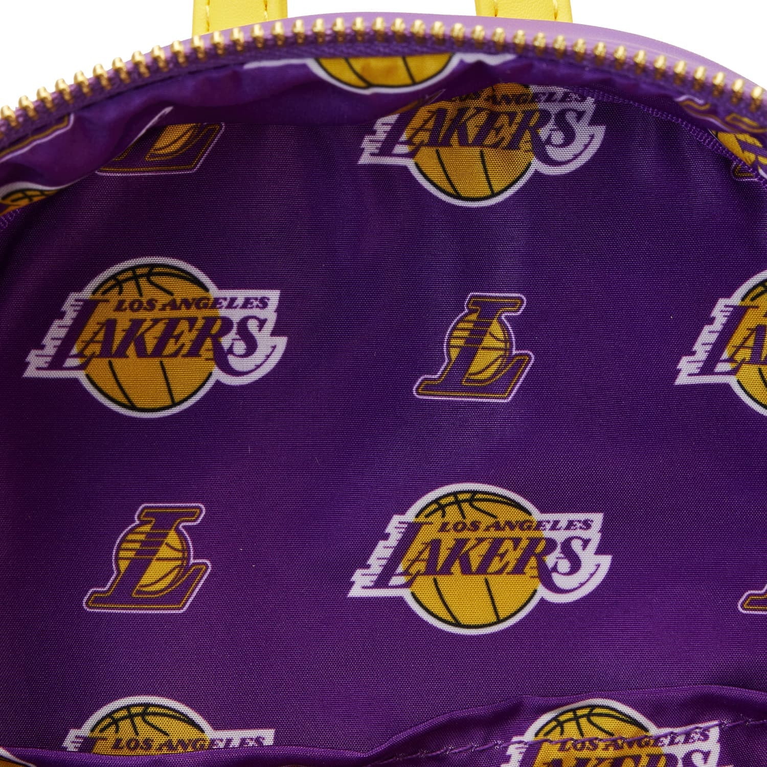 The Loungefly NBA Los Angeles Lakers Patch Icons Mini Backpack is made of vegan leather (polyurethane). Bag has adjustable shoulder straps and sturdy metal hardware. Additional features include applique, debossed, and printed details. Take note of the coordinating inside lining.