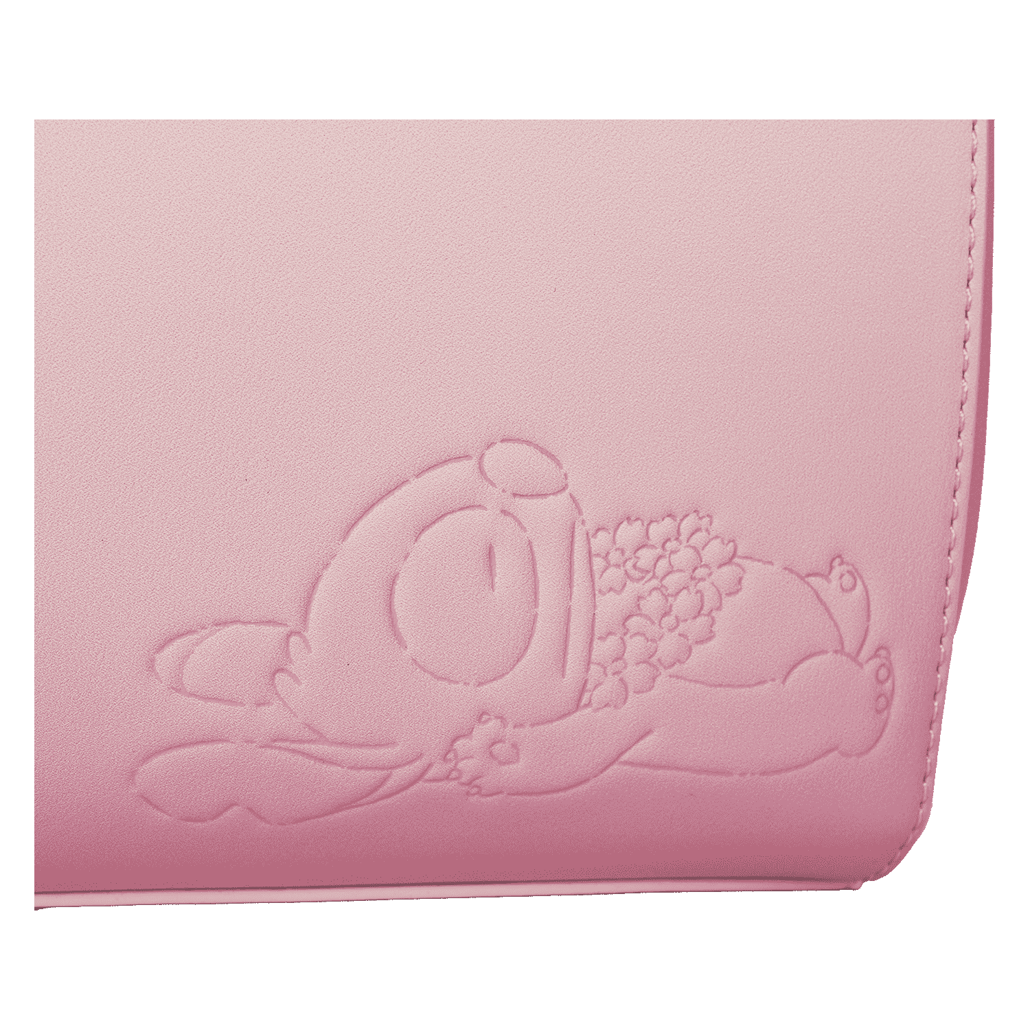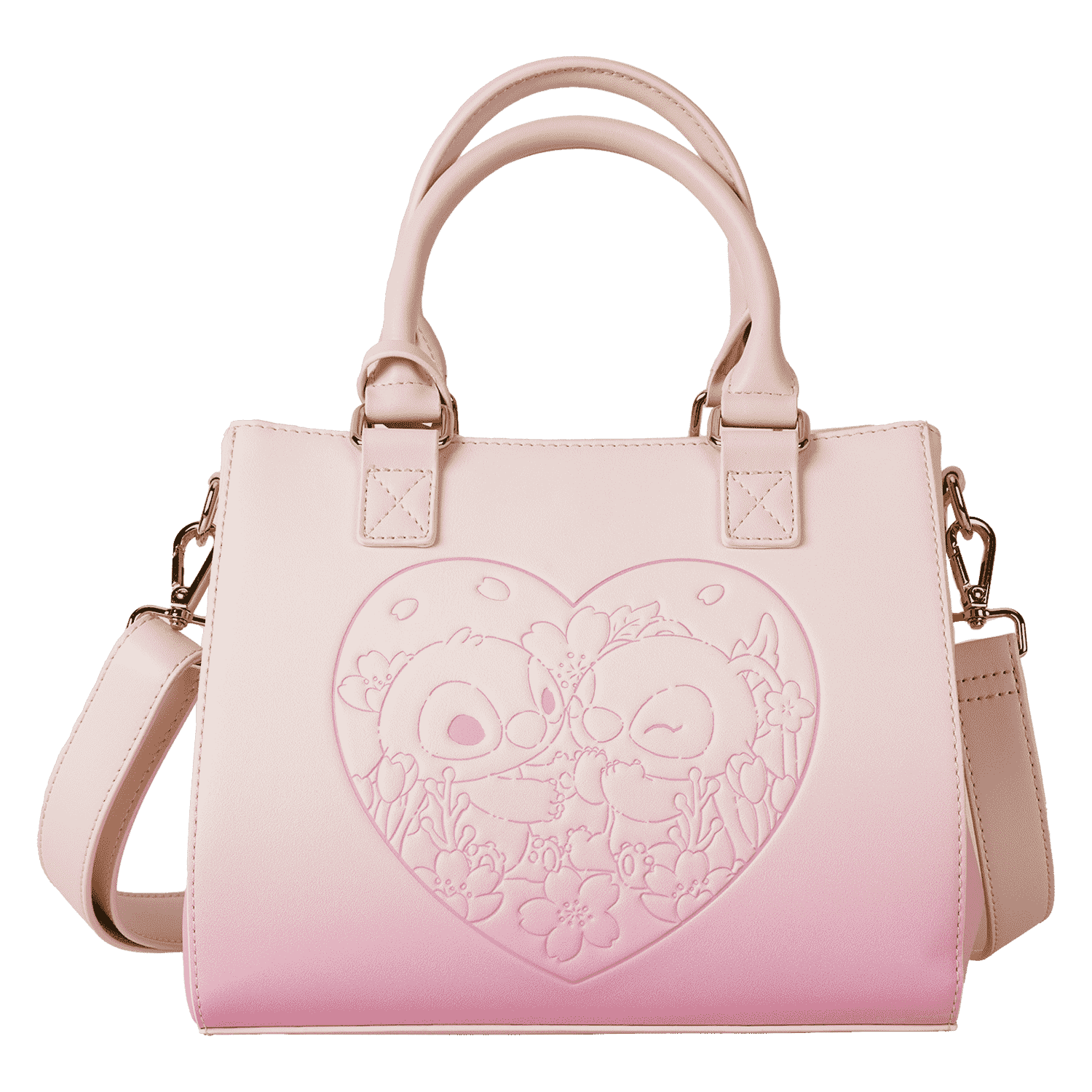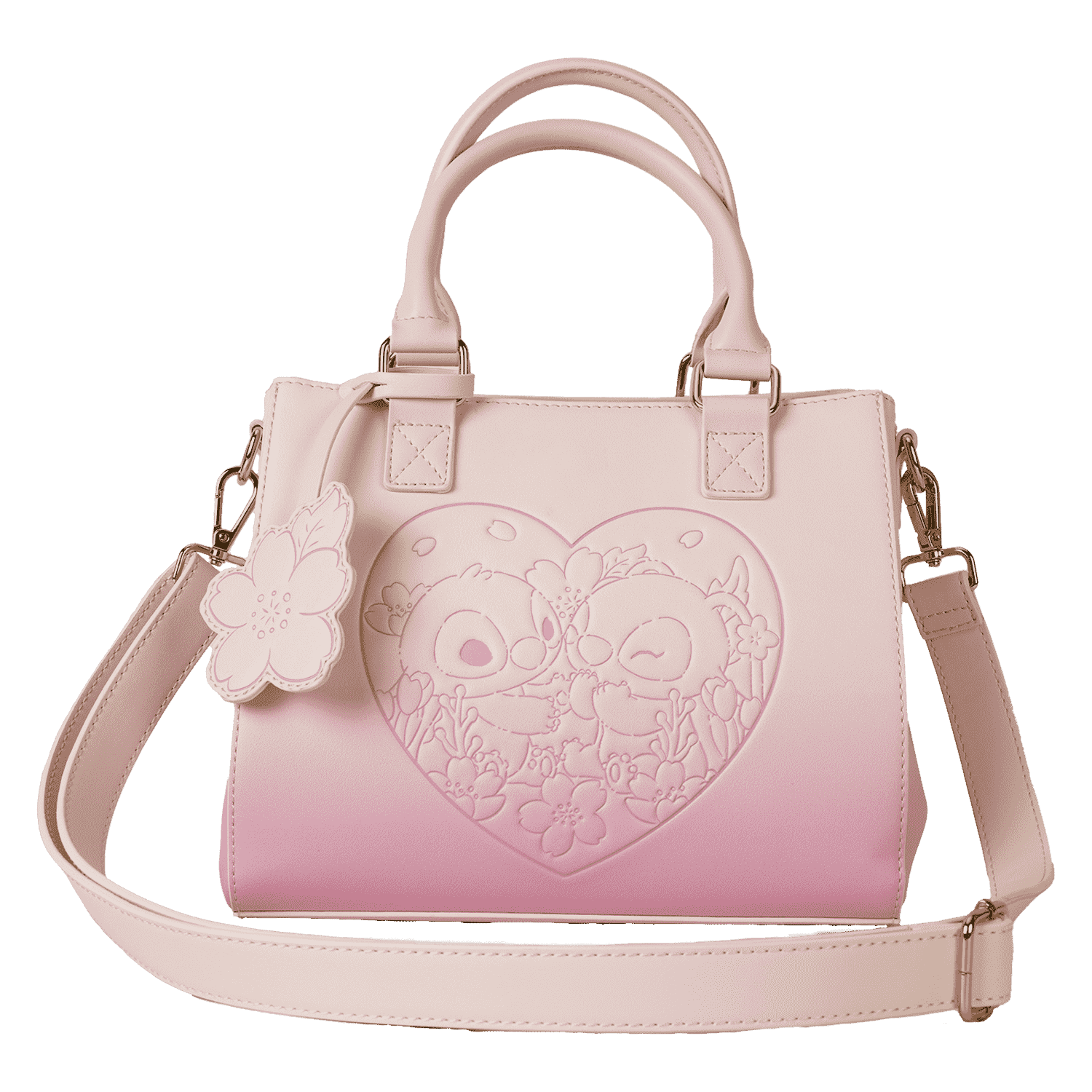 Keep your best boojiboos forever (BBFs) close with a fashionable flair. Take along this Disney’s Stitch and Angel crossbody bag. This accessory shimmers in shades of soft pink. The front features an embossed heart that frames a charming moment between Stitch and Angel, unfolding among the flowers. A cherry blossom vegan leather charm tops off the look. There’s enough room for packing just what you need for a fun-filled day of sweet adventures.